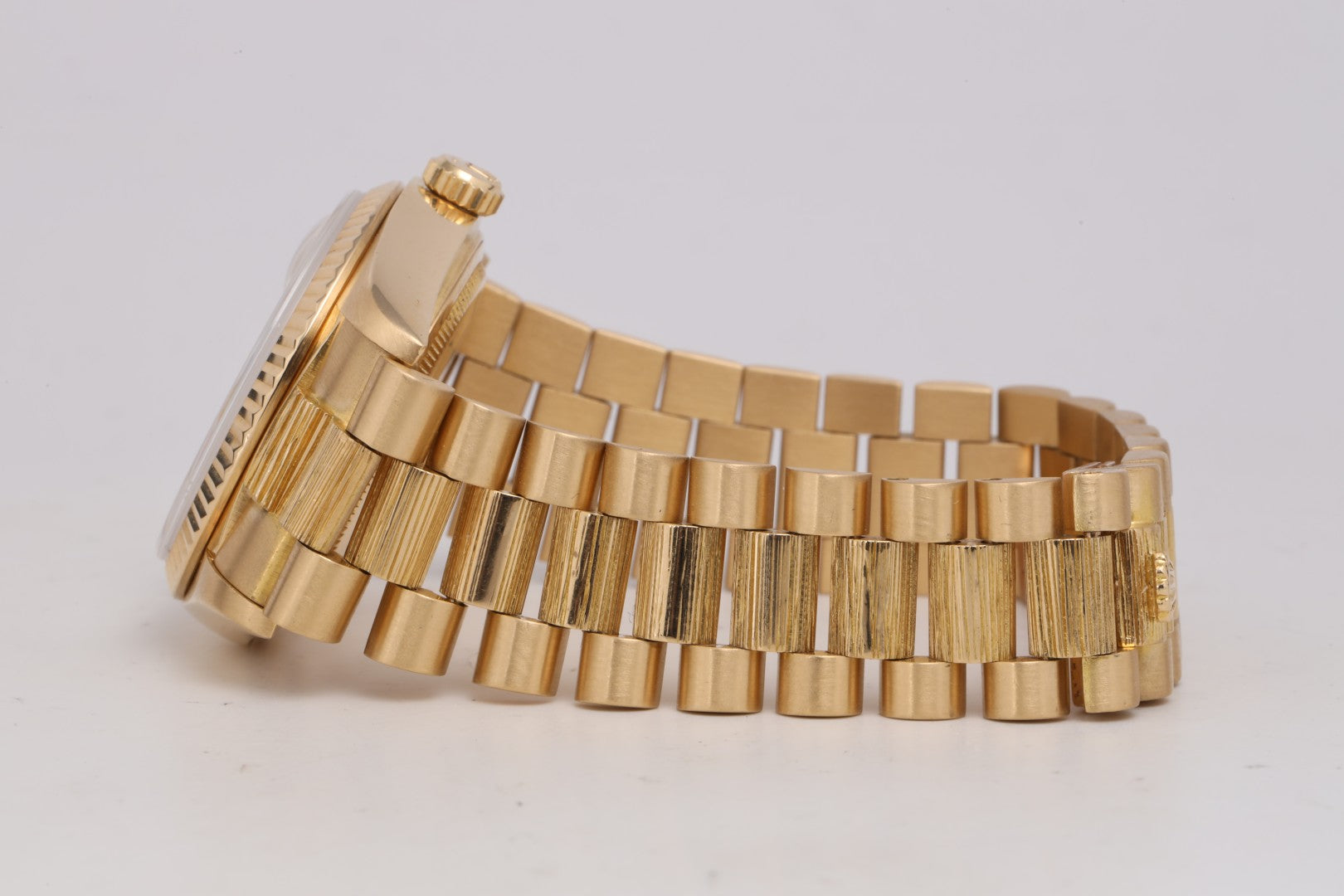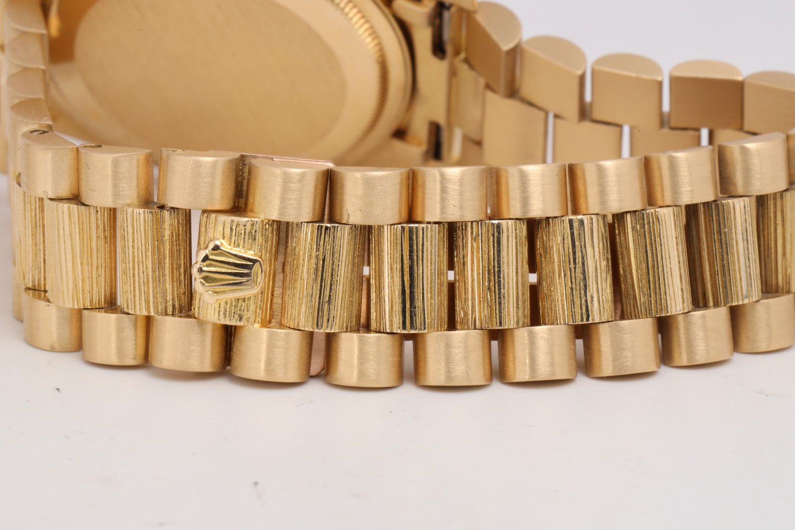 - Band: 18k Yellow Gold Presidential Bracelet with Bark Finish (fits 7.25", 5 screws)