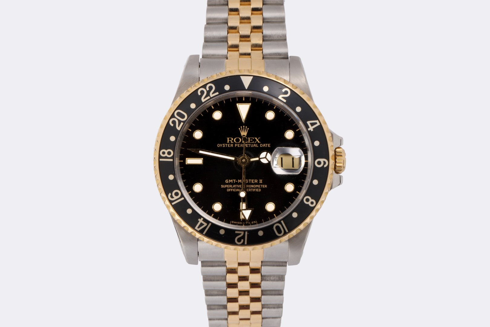 Rolex GMT-Master II 16713 Stainless Steel & 18k Yellow Gold 40mm Black Dial Watch (1989)