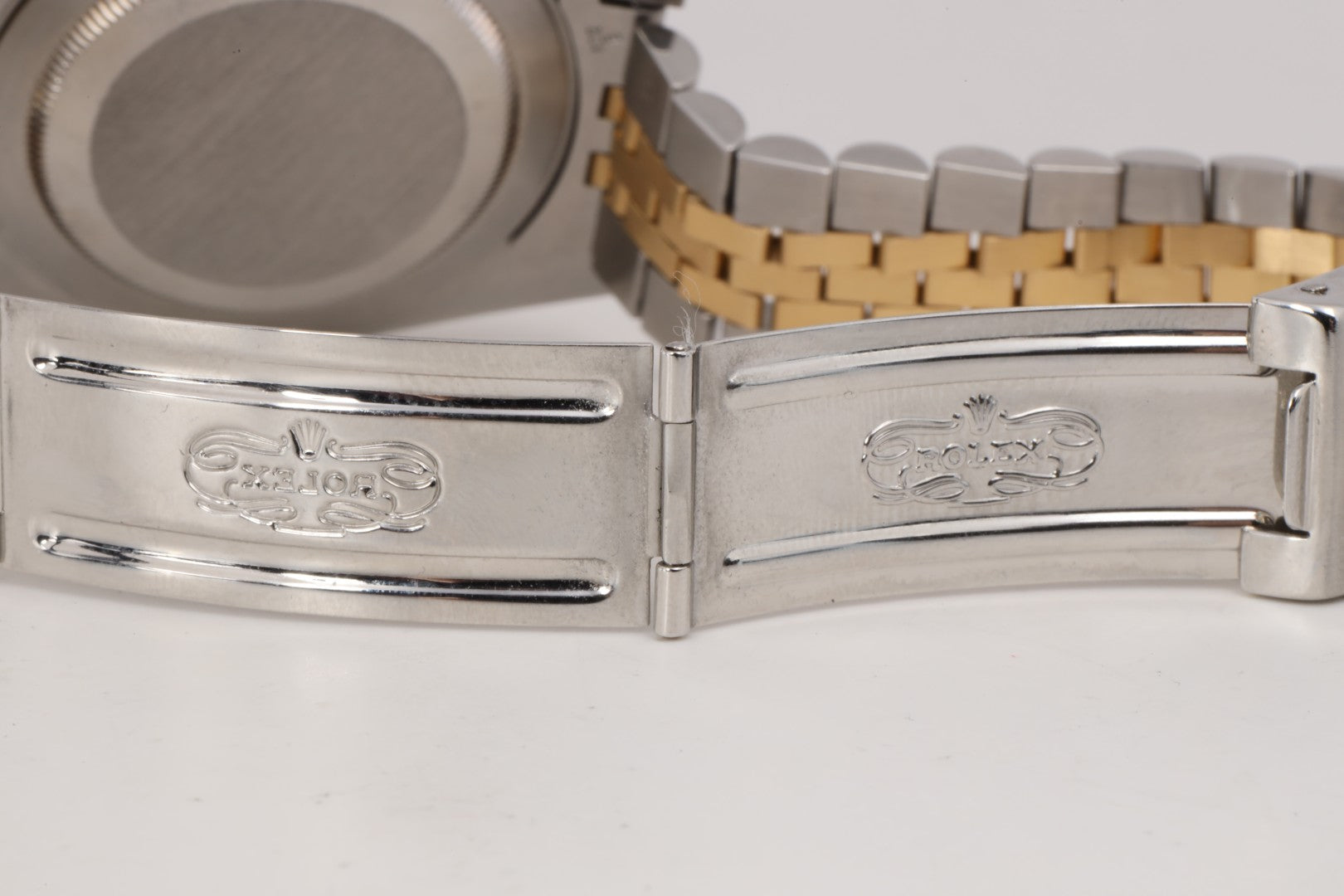 - Bracelet: Jubilee, Stainless Steel & 18k Yellow Gold, 6.75" Max Wrist Size, 3 Screws, Fold Clasp (Rebuilt)