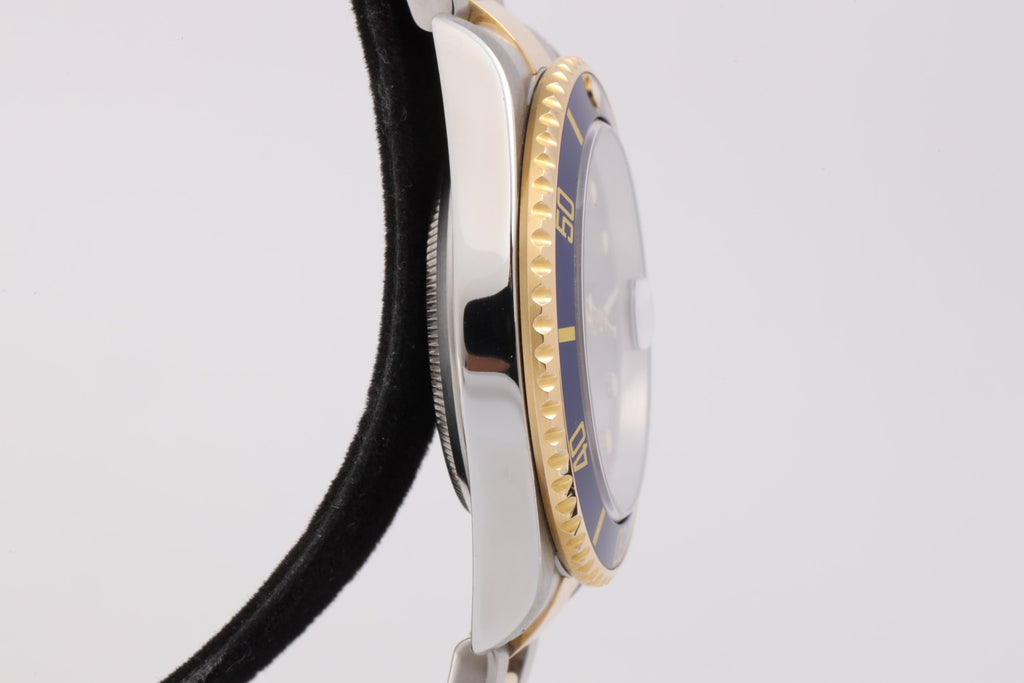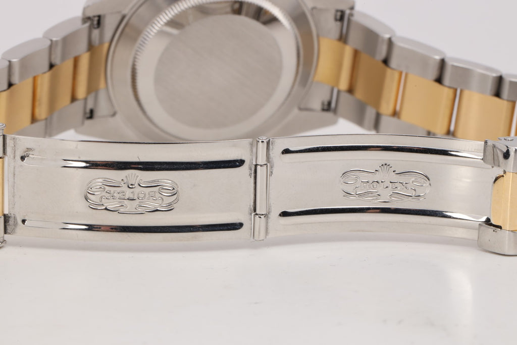 This example, dated 2004, is in excellent overall condition (9/10) and performs within modern chronometric standards at +2 seconds per day. The stainless steel and gold Oyster bracelet fits up to an 8-inch wrist and maintains its original integrity, complemented by a bezel and crystal free of major wear. Pressure tested and fully inspected by our in-house watchmaker, this piece remains a standout investment-grade Submariner and a staple of Rolex’s legendary design lineage.