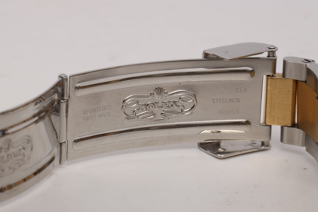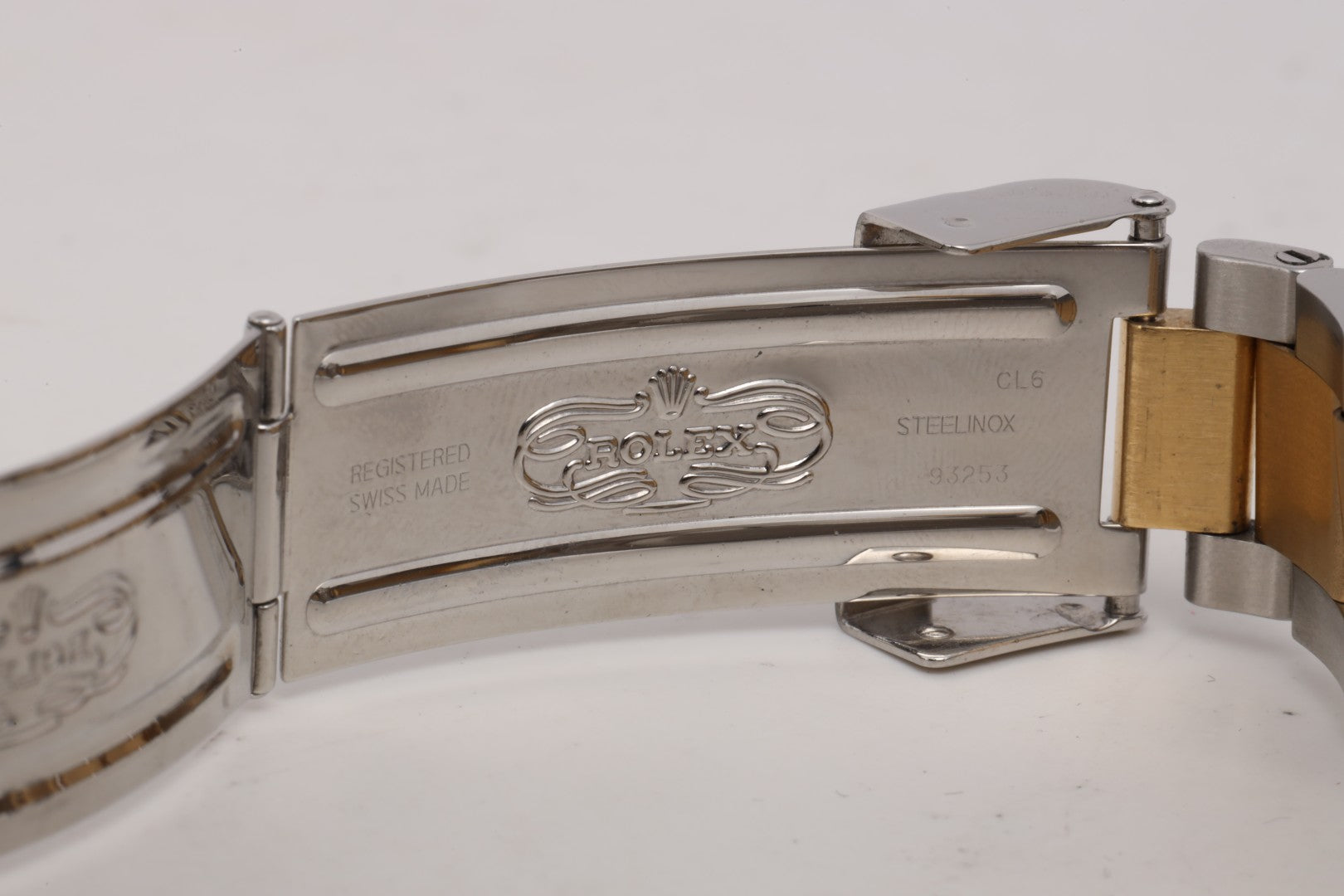 - Bracelet: Oyster, Stainless Steel & 18K Yellow Gold, 8" Max Wrist Size, Fold Clasp (5 screws)