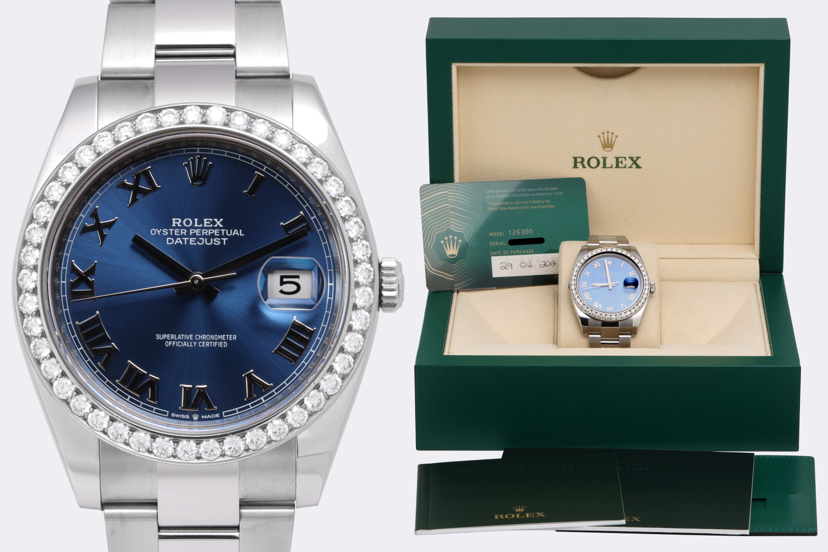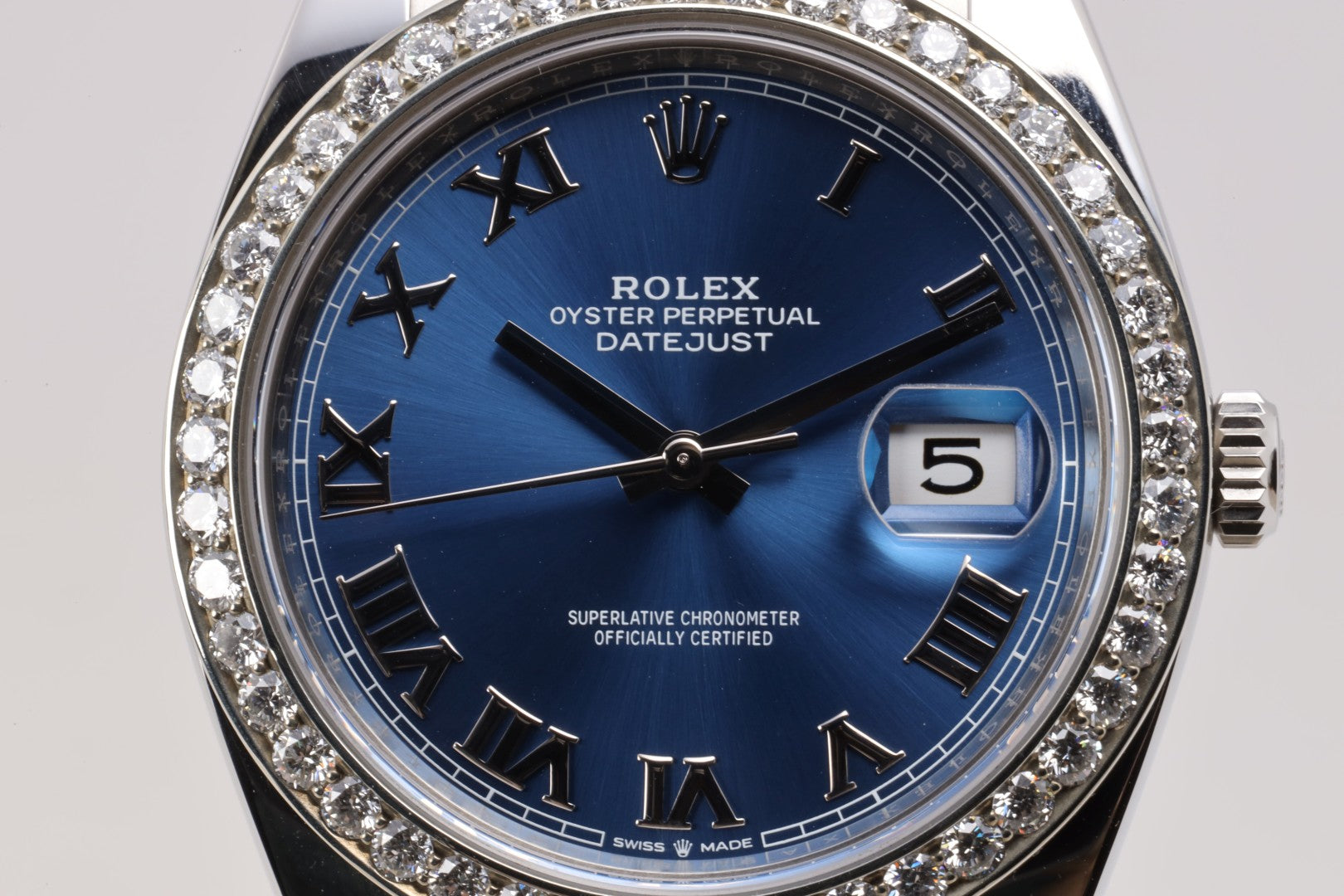 This Rolex Datejust II 126300 offers a perfect balance of modern refinement and timeless design, elevated by the addition of an aftermarket diamond bezel that enhances its luxury appeal. Crafted in stainless steel with a 41mm case and a classic Oyster bracelet, this model exudes sophistication and presence on the wrist. Its sleek aesthetic and precise automatic movement make it a statement piece for both everyday wear and formal occasions.