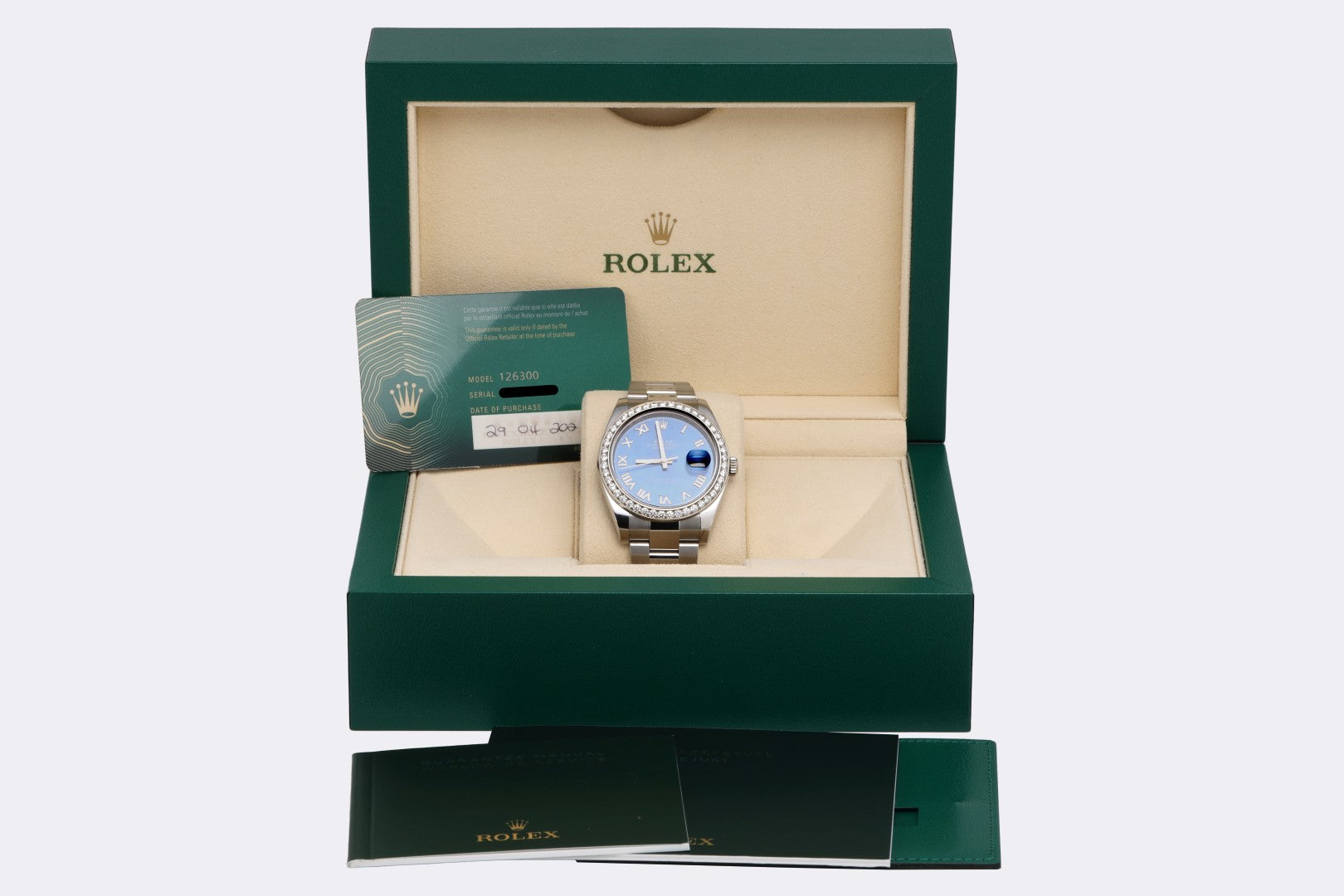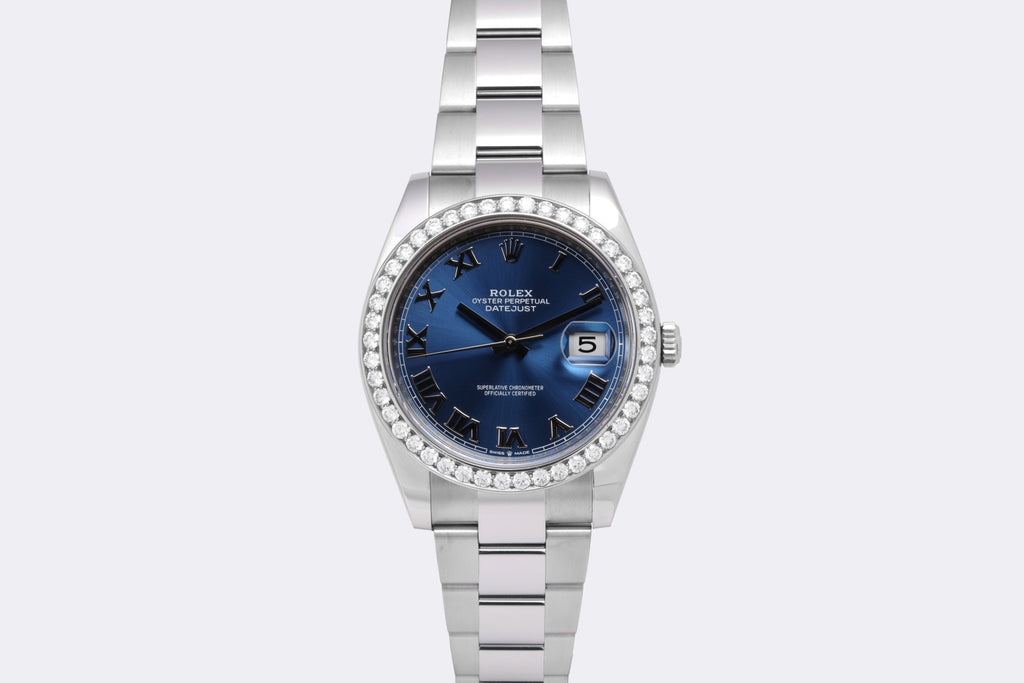 Powered by the Rolex Caliber 3235 movement with a 72-hour power reserve, this timepiece embodies Rolex’s technical excellence—offering superior accuracy, durability, and reliability. Complete with its original box and papers, this 2021 example has been fully inspected and approved by our in-house watchmaker. The Datejust II remains one of Rolex’s most iconic and versatile models, made even more striking with this diamond-set bezel upgrade.