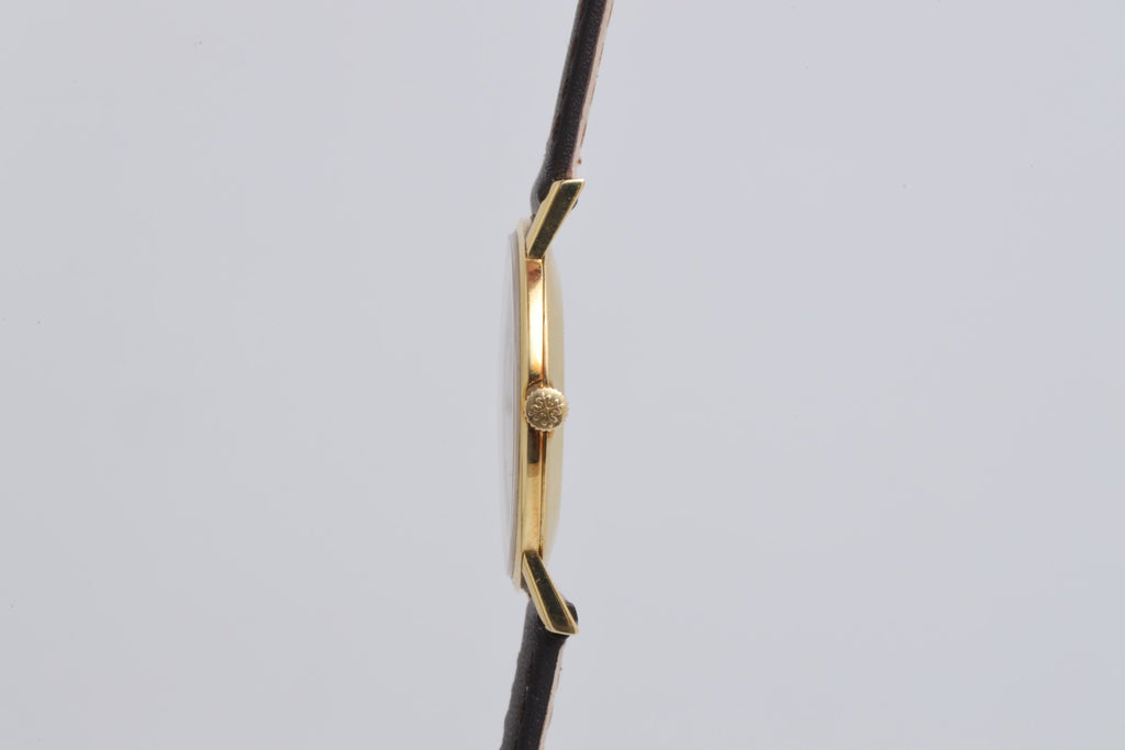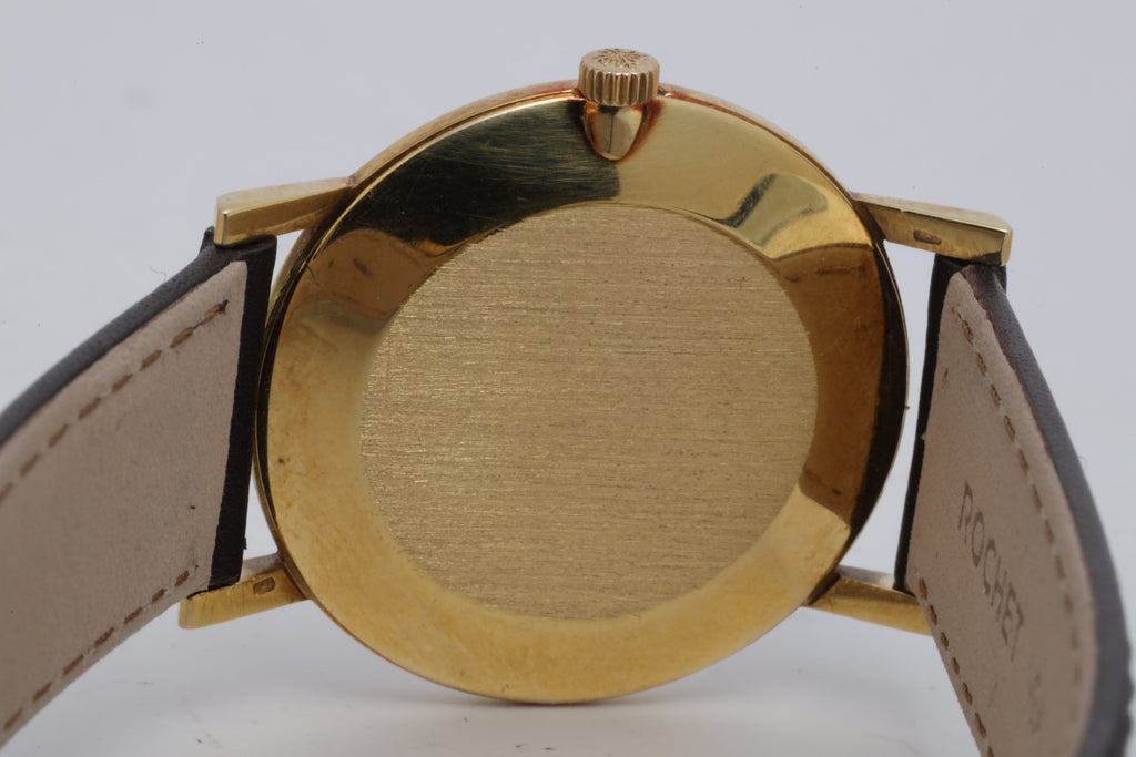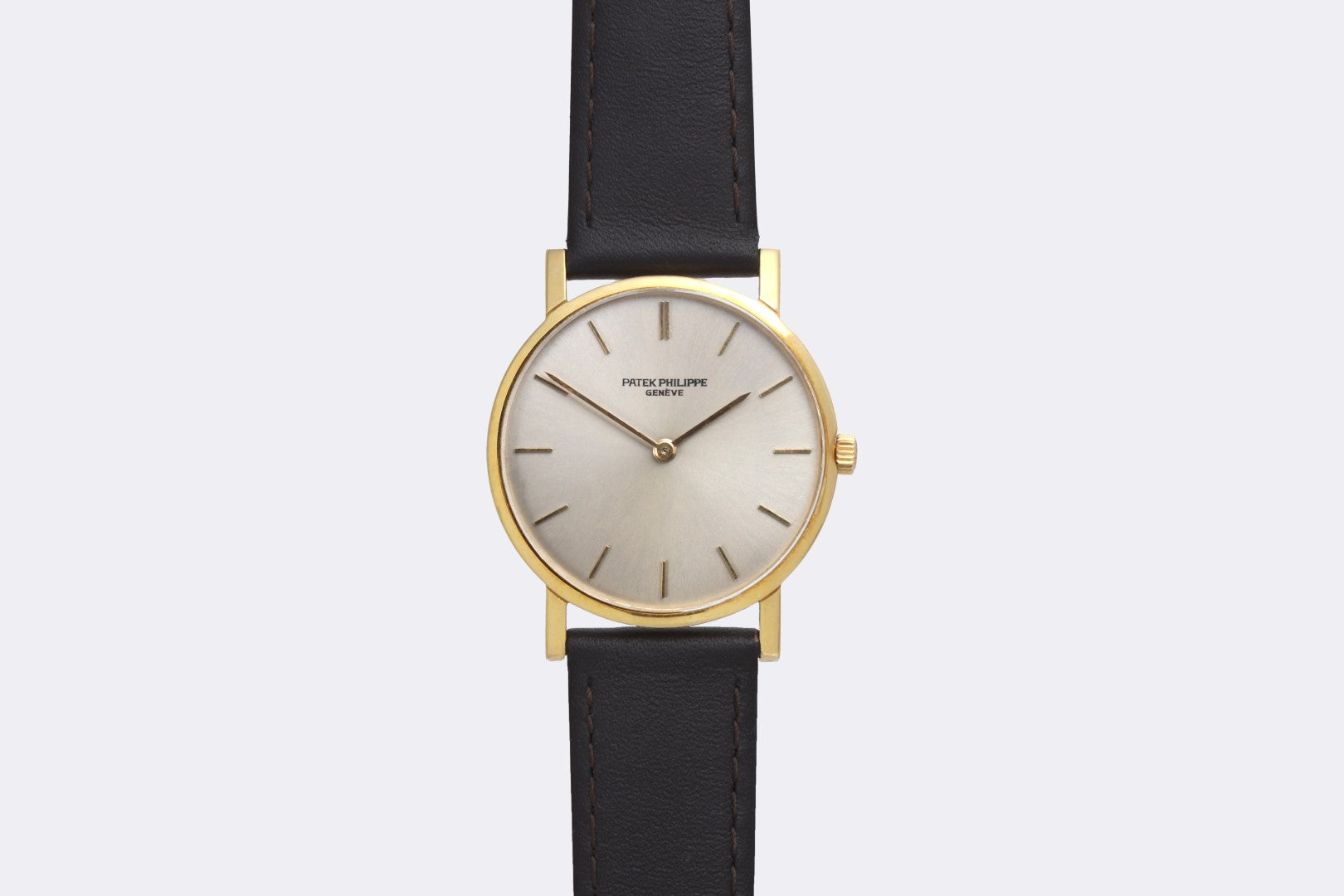 The Patek Philippe Calatrava Ref. 3470 embodies the purest expression of the brand’s timeless dress watch design. Crafted in 18k yellow gold with a slim 29mm case, sapphire crystal, and snap-back case design, this elegant piece is powered by the manual-wind caliber 175 movement. With simple hours and minutes functionality, the Calatrava highlights understated sophistication and has long been considered a benchmark of classic Swiss watchmaking.