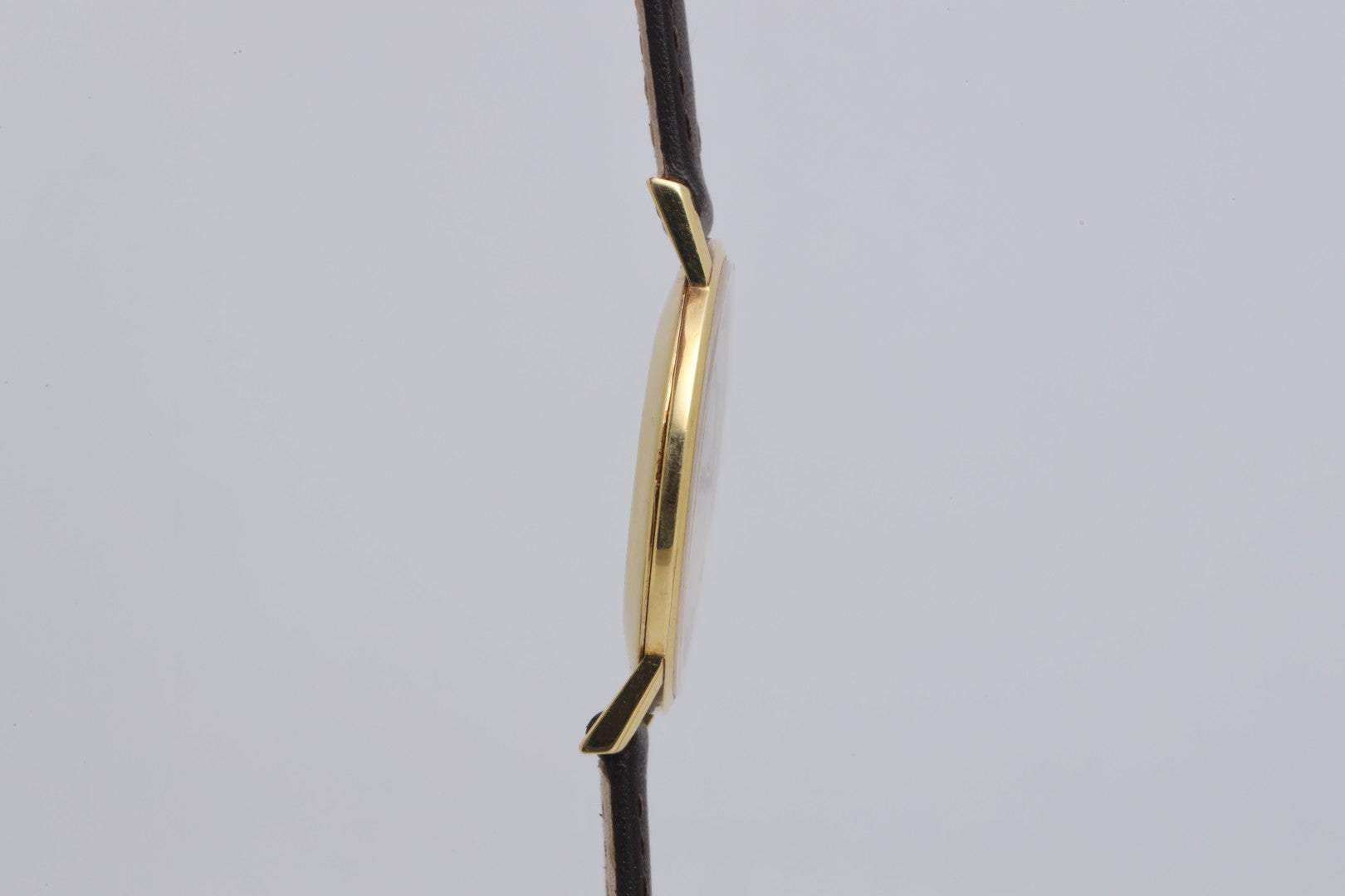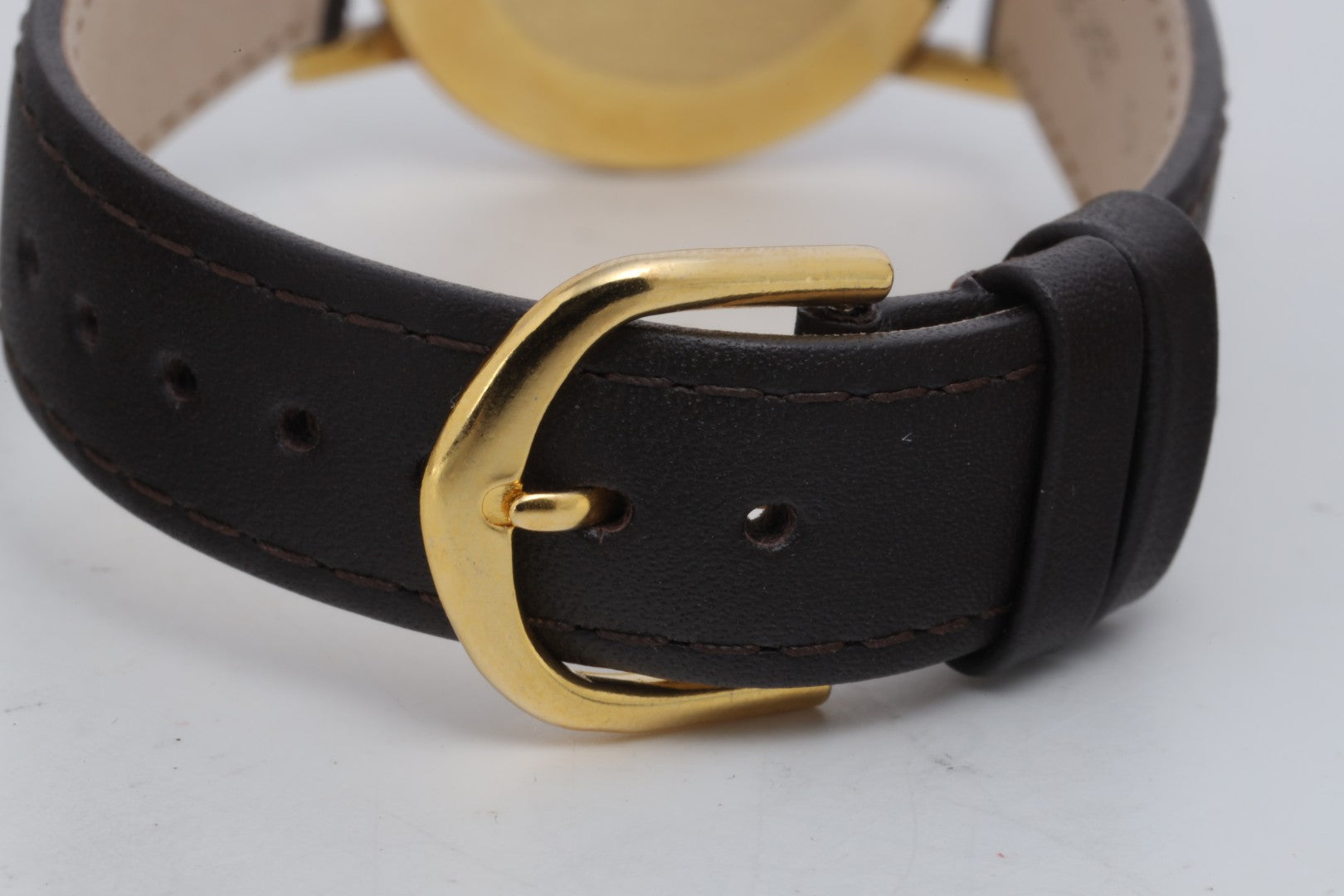 - Strap: Brown Leather (Aftermarket), 8" Max Wrist Size, Tang Buckle