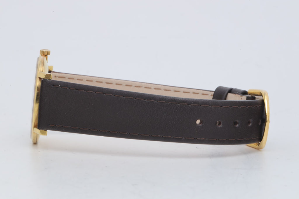 This example features a refinished dial and is paired with an aftermarket brown leather strap and tang buckle. Recently serviced (9/19/2025), it runs at +6 seconds per day and comes backed by a 1-year in-house warranty. PM Number: PM2016190.