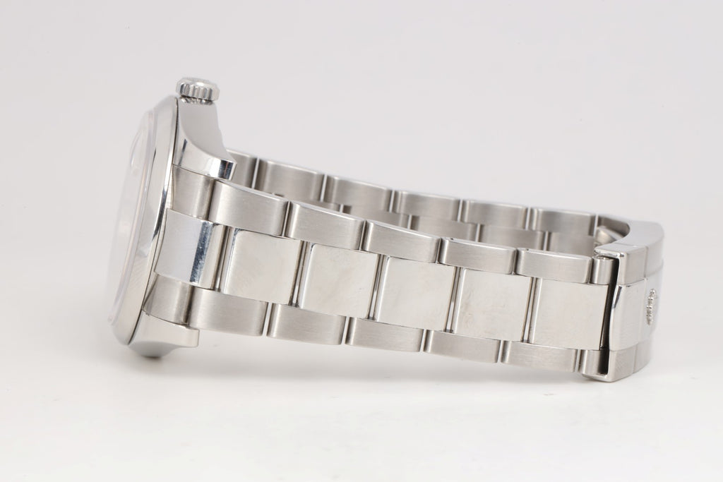 This 2011 Rolex Datejust 116200 features a 36mm stainless steel case with a smooth bezel and classic Oyster bracelet. It’s powered by the automatic Caliber 3135 movement, offering a 48-hour power reserve and notable accuracy at +10 seconds per day. This example includes the desirable roulette date wheel and has been fully pressure tested and inspected by our watchmaker. Comes complete with original box and papers; aftermarket crystal noted.