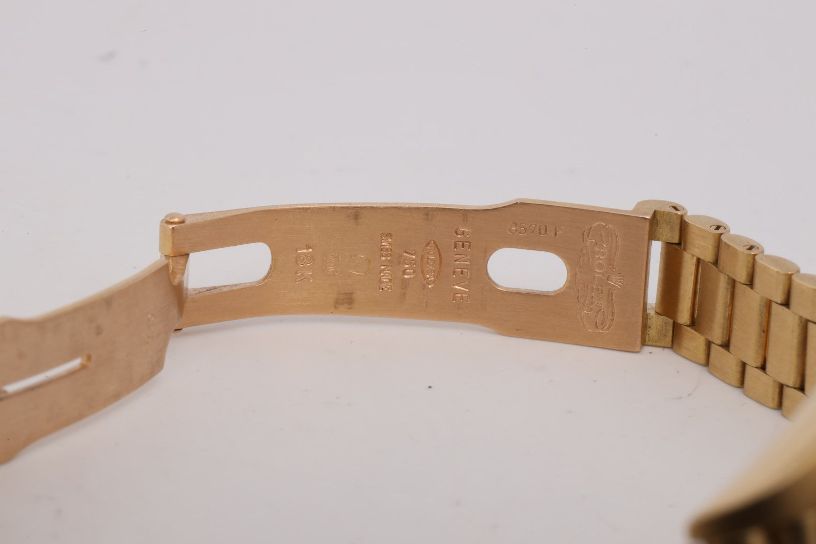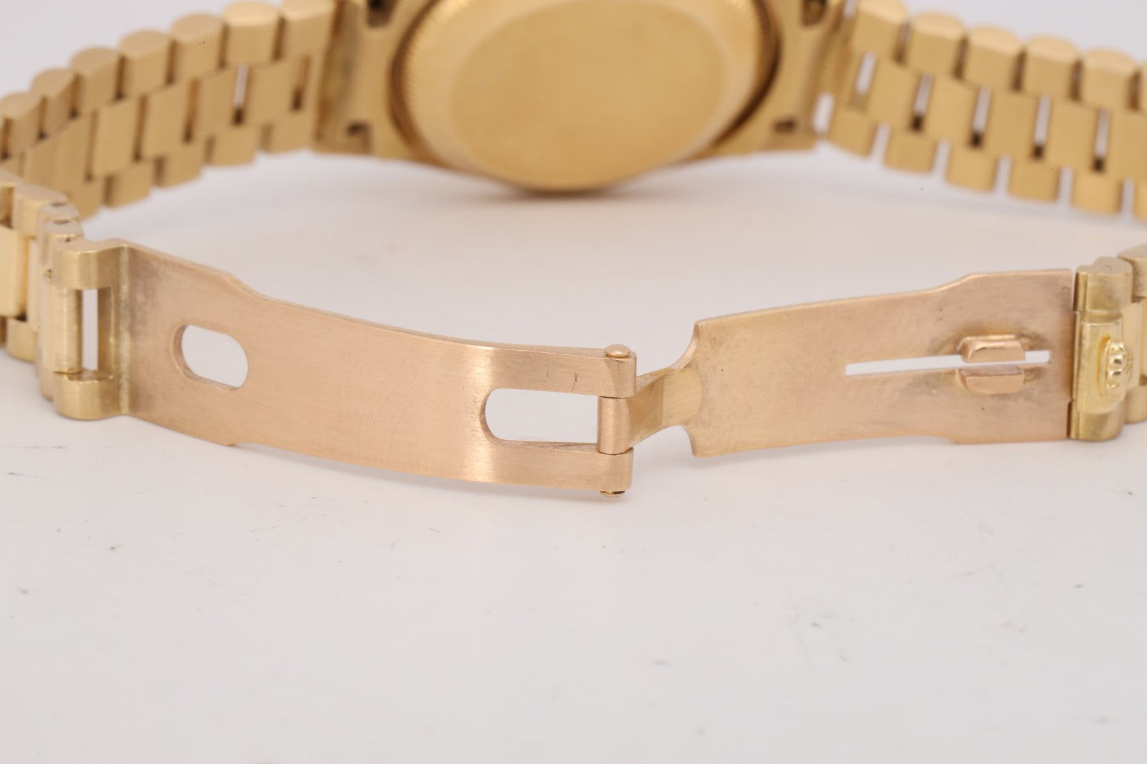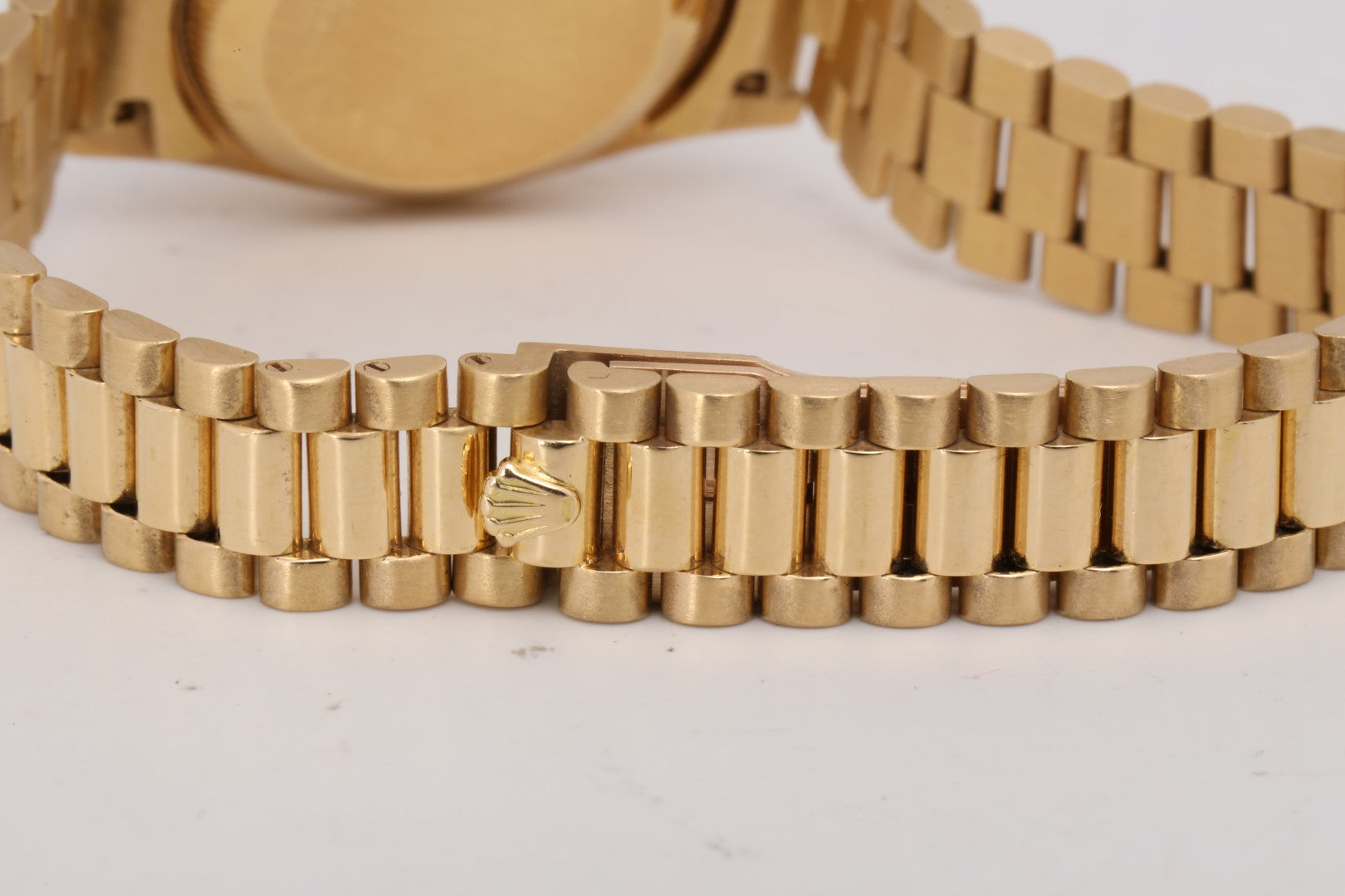 - Band: 18K Yellow Gold Presidential Bracelet, 6.5" Wrist, Hidden Fold Clasp