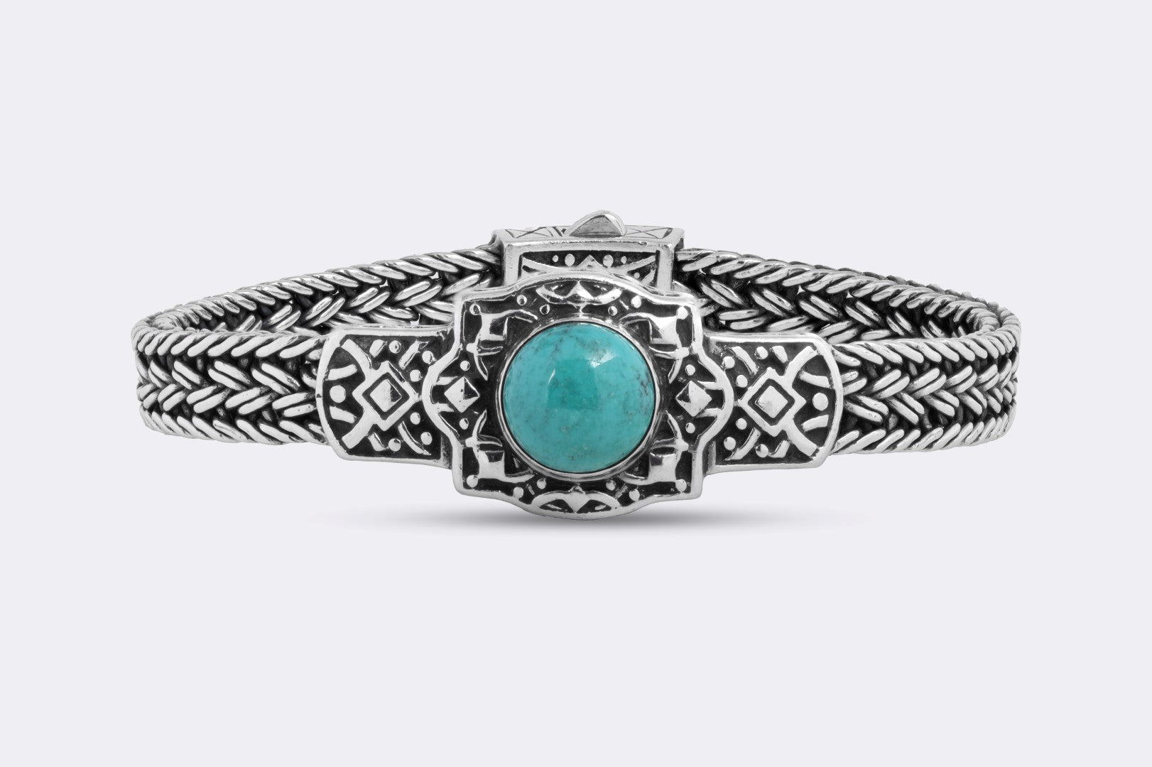 6.75" John Hardy 925 Silver Turquoise Basketweave Bracelet (29.64g.)