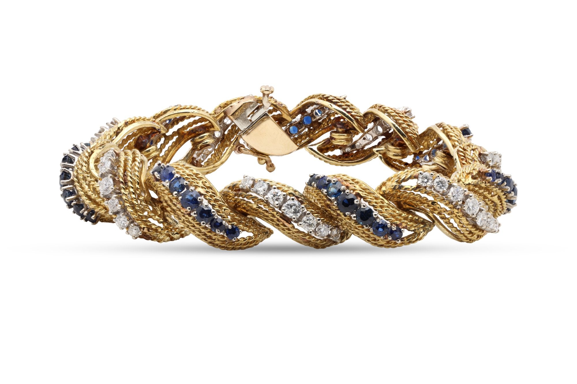 Vintage 7'' 18k Yellow Gold 2.94ctw Diamond 4.84ctw Sapphire Bracelet (39.05g.)