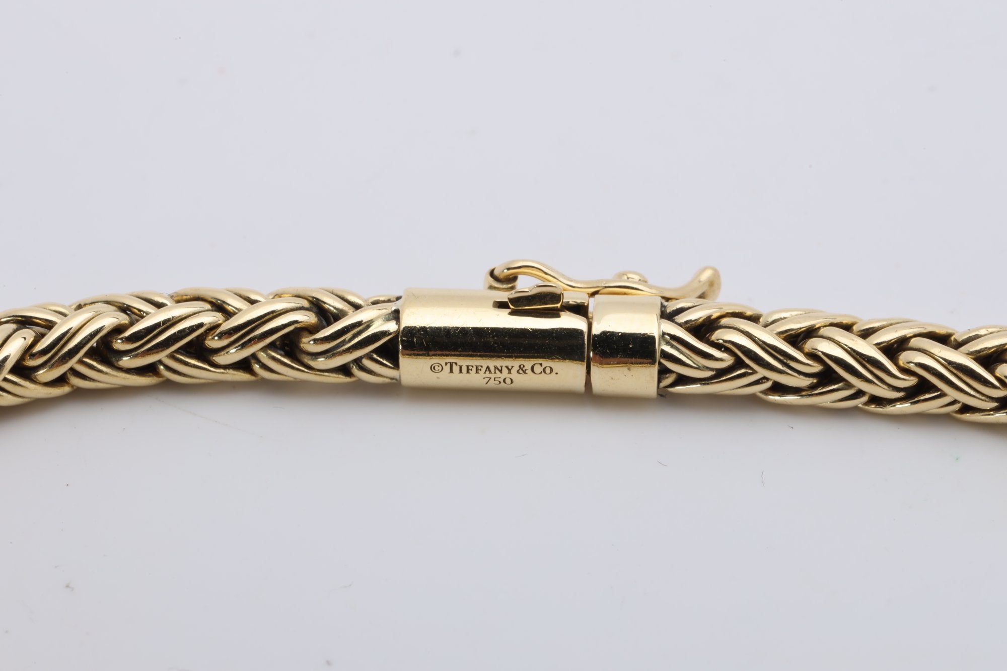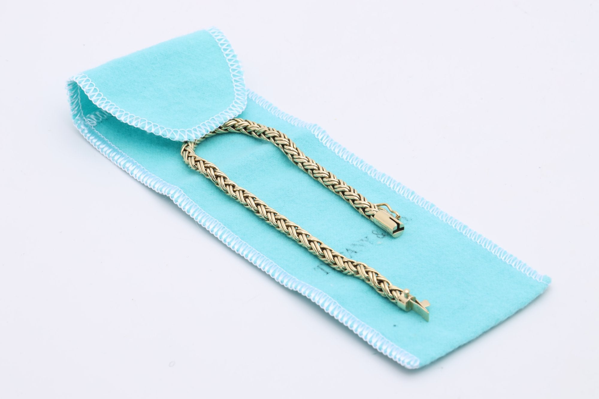 This elegant bracelet from Tiffany & Co. is a timeless piece that adds a touch of sophistication to any outfit. Crafted from 18k yellow gold, it features a woven design that is both classic and contemporary.