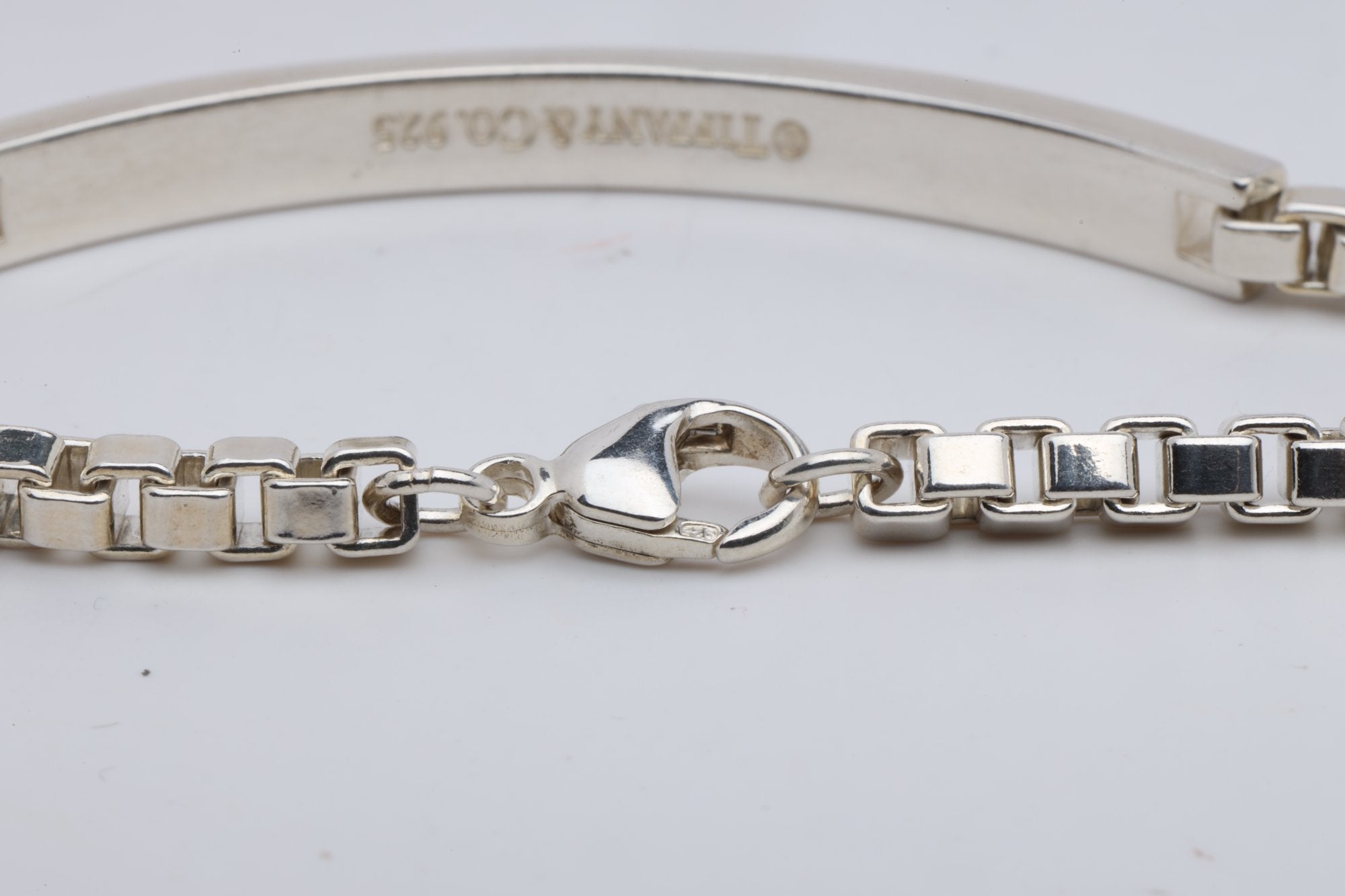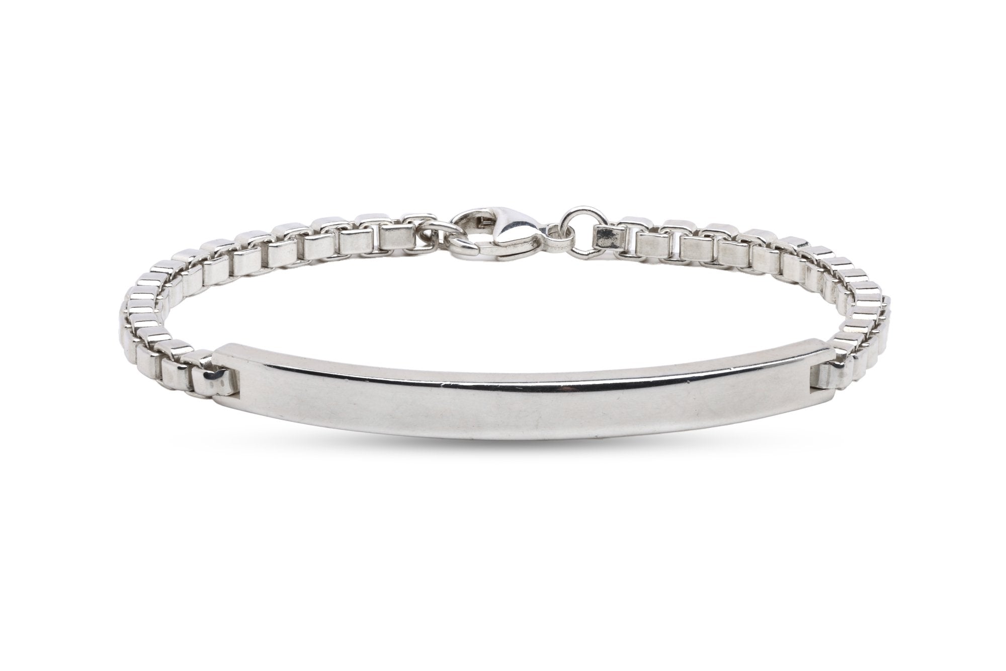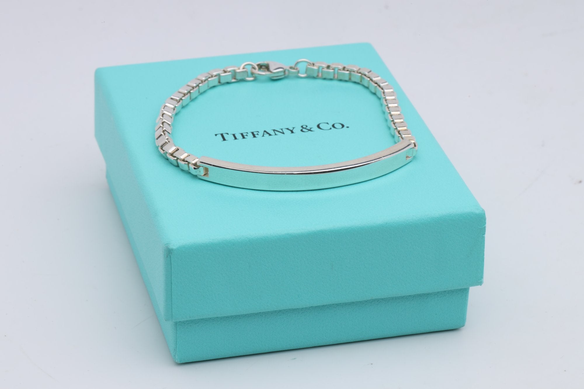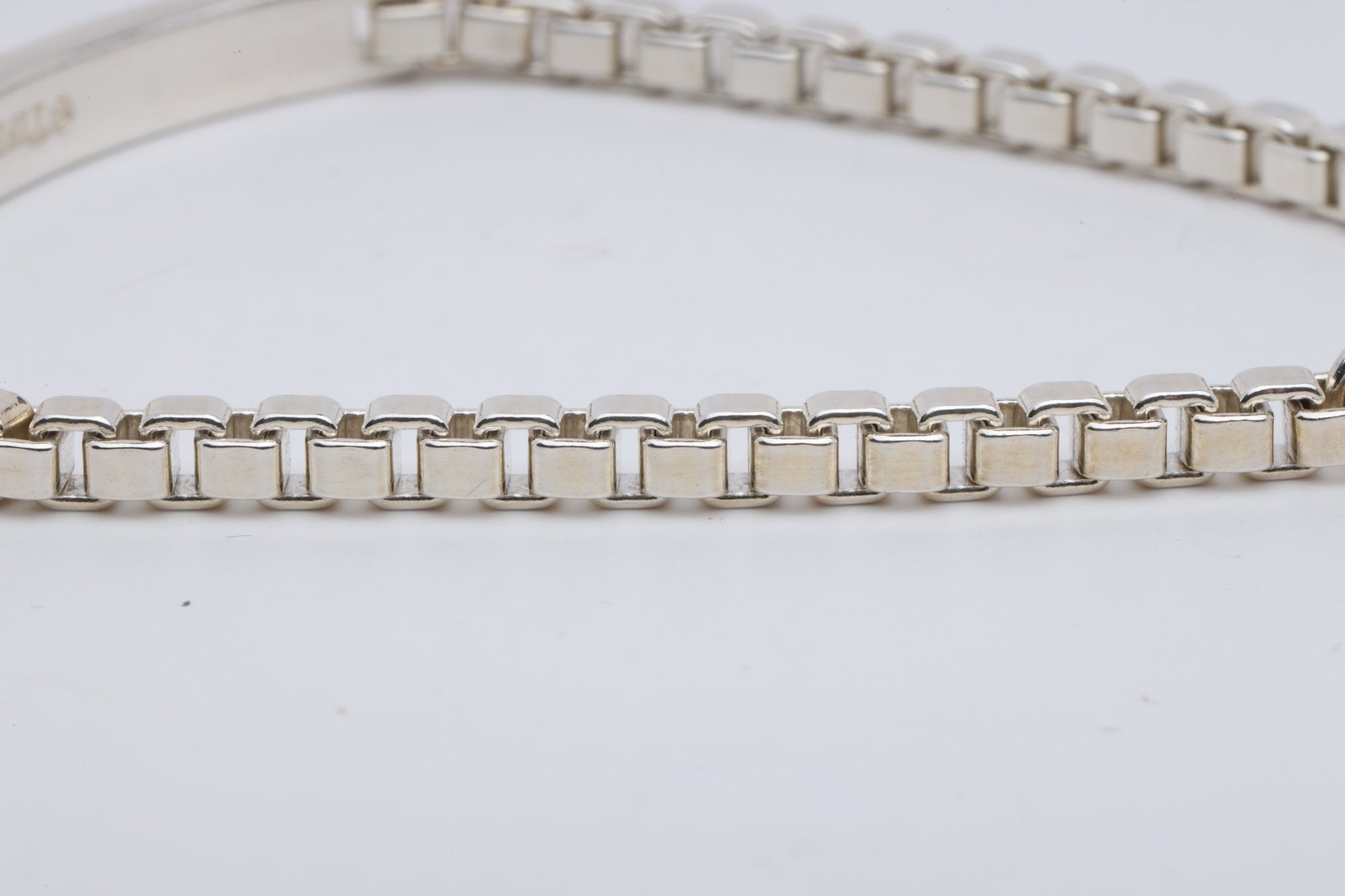 7.5'' Tiffany & Co. 925 Silver Venetian Box Link I.D. Bracelet (10.25g.)