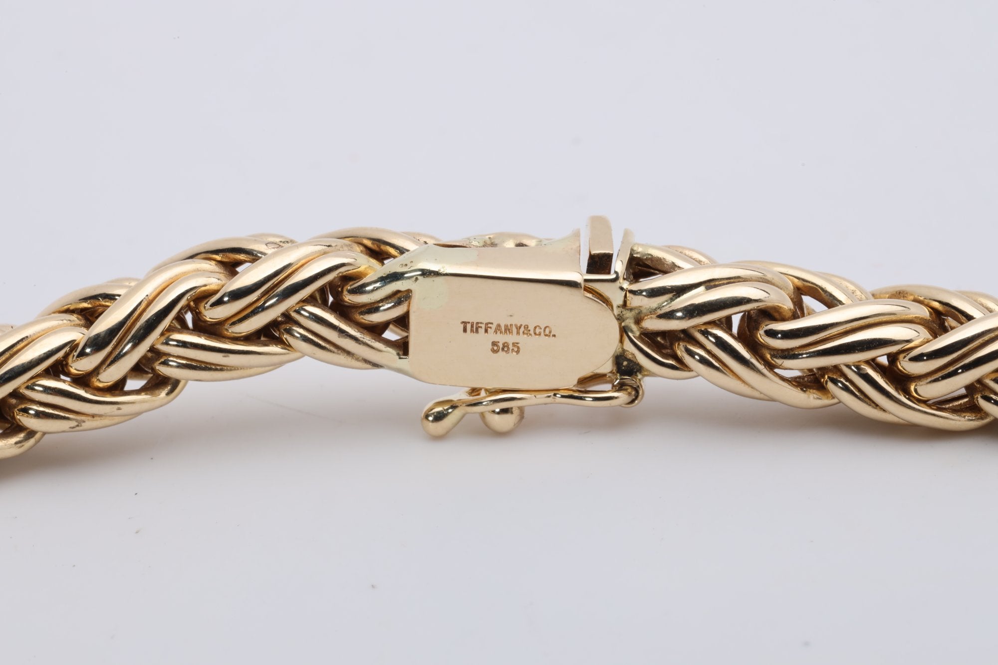 This exquisite piece is a 16.5'' woven chain made by the renowned Tiffany & Co. Crafted from 14k yellow gold, the chain features a secure box clasp and is engraved with the Tiffany & Co signature.