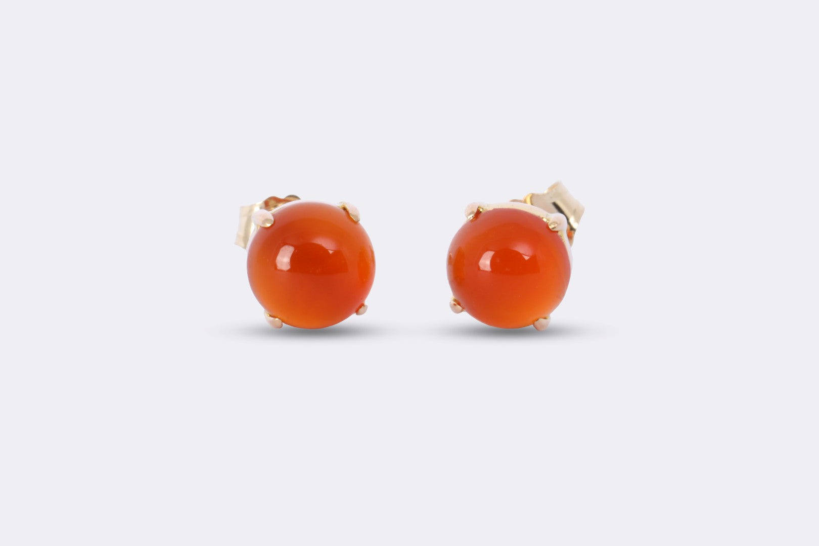 These elegant cabochon carnelian stud earrings bring a warm, earthy glow to any look. Crafted in 14k yellow gold, each earring features a smooth, polished carnelian gemstone in a classic round setting. Lightweight and versatile, they’re perfect for everyday wear or adding a touch of natural beauty to special occasions.