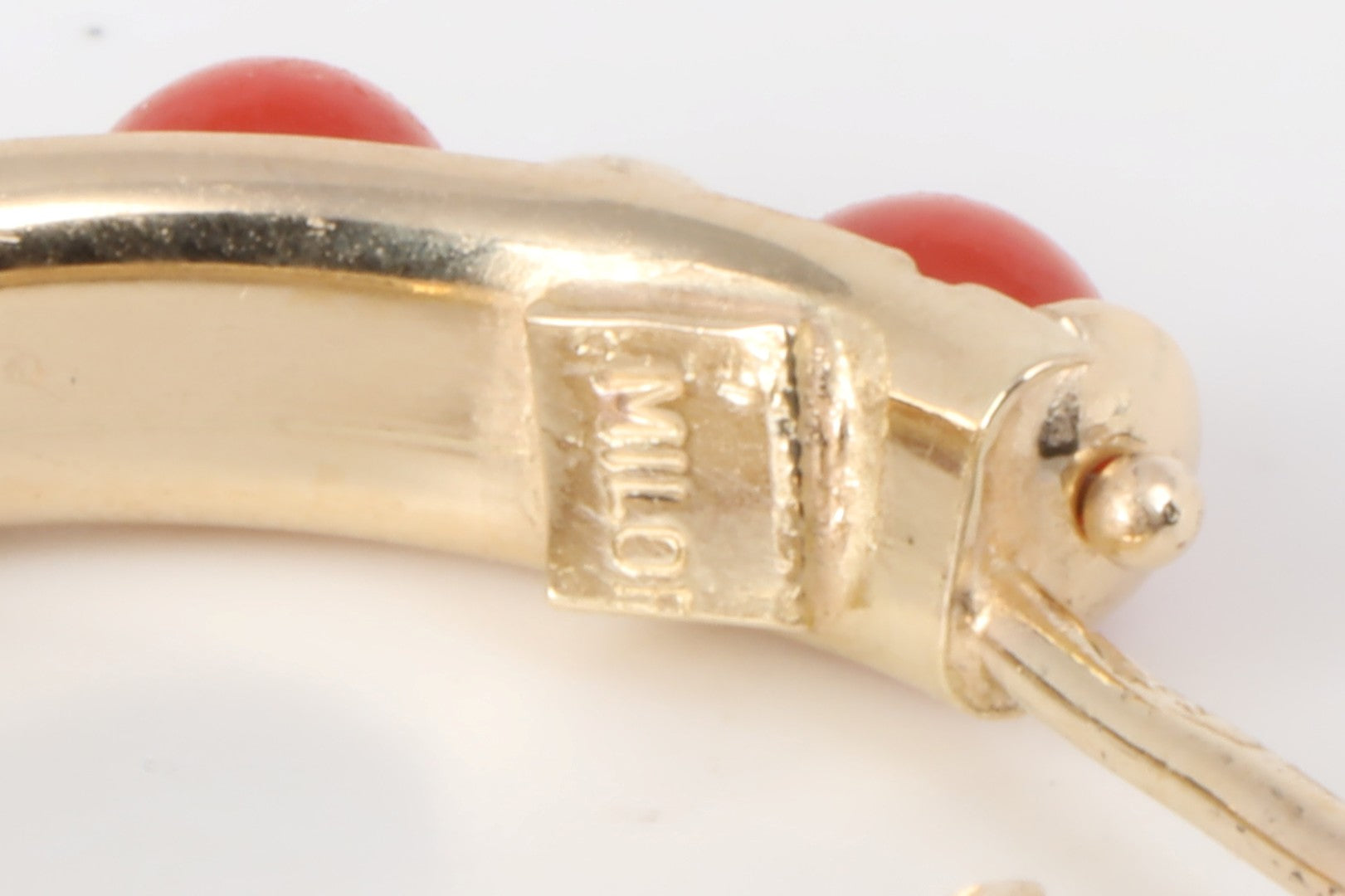 Bring on the bold! These vibrant 14k yellow gold hoop earrings are strung with 3.20 carats of lush red-orange coral beads that radiate warmth and vintage-inspired charm. Crafted by Milor Italy and stamped accordingly, they’re lightweight, fiery, and full of personality—perfect for beach days, boho looks, or elevating your everyday. A unique find for collectors and color lovers alike.