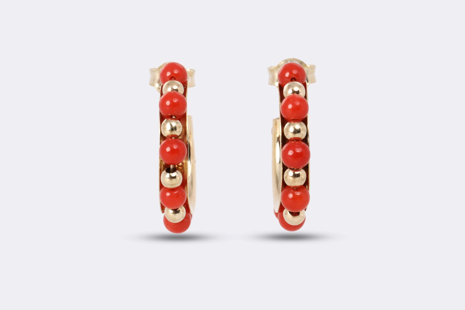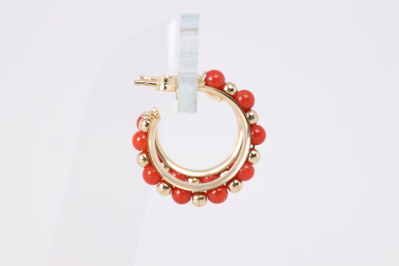 14k Yellow Gold 3.20tcw Coral Beaded Hoop Earrings (2.92g.)