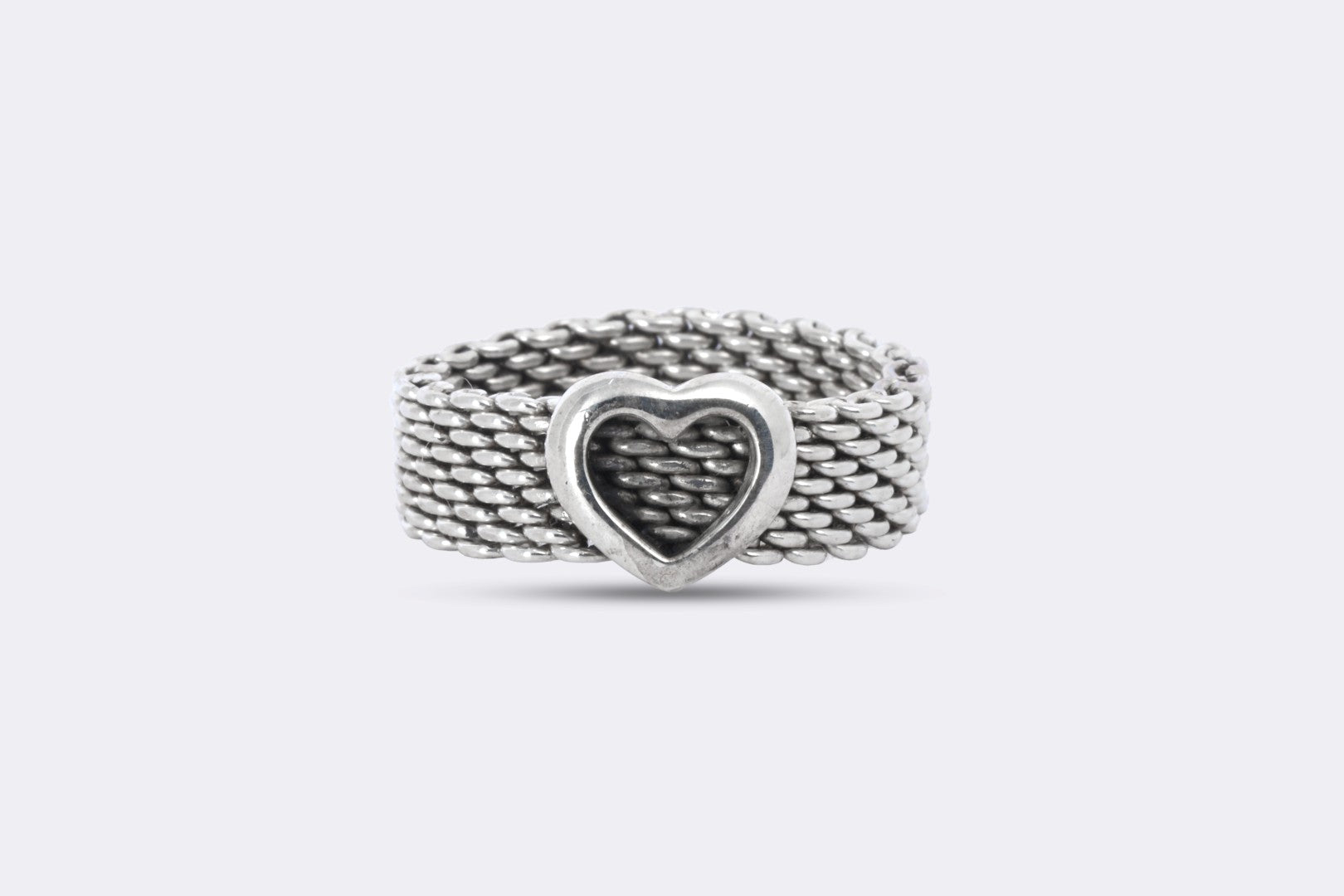 Tiffany & Co. 925 Silver Somerset Mesh Heart Ring Size 6 (4.80g.)