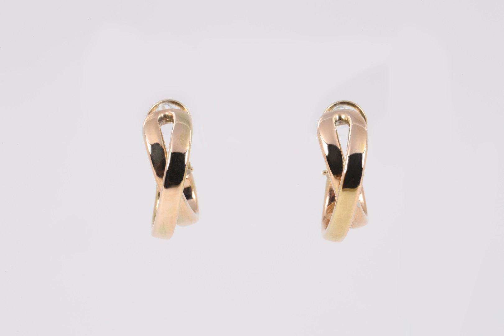 14k Two-Tone Gold Crossover Hoop Earrings (4.24g.)