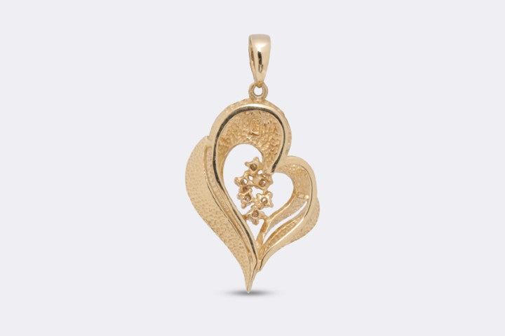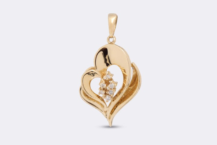14k Yellow Gold 0.12tcw Diamond Scrolling Heart Pendant (4.32g.)