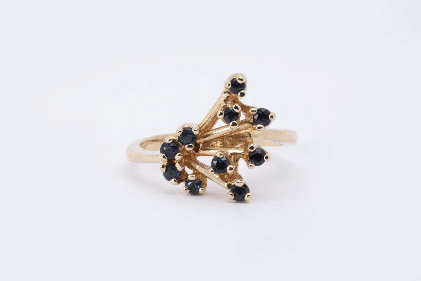 14k Yellow Gold 0.34tcw Sapphire Burst Ring Size 5.25 (3.48g.)