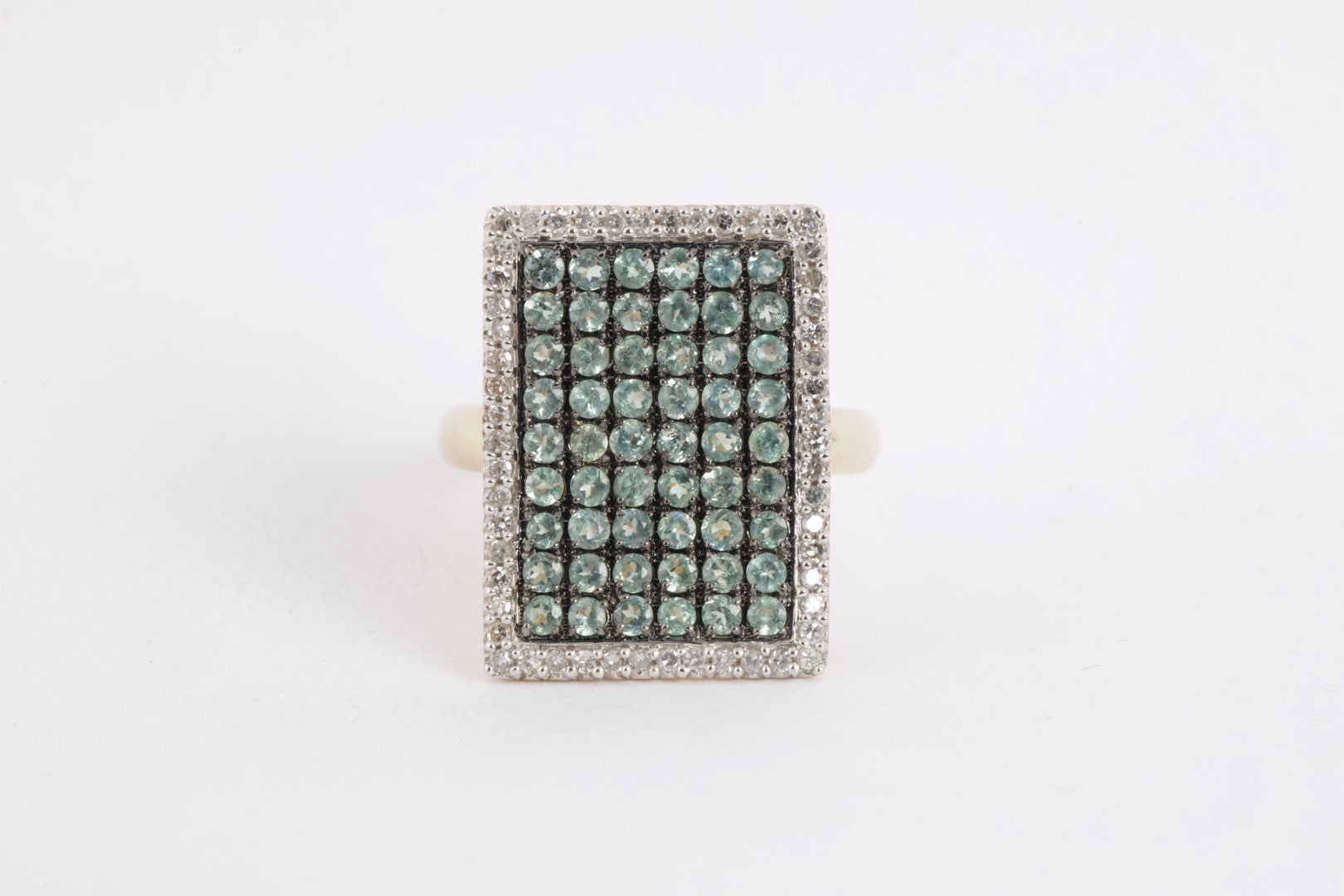 14k Yellow Gold 0.54tcw Diamond & Green Stone Saddle Ring Size 8 (5.40g.)