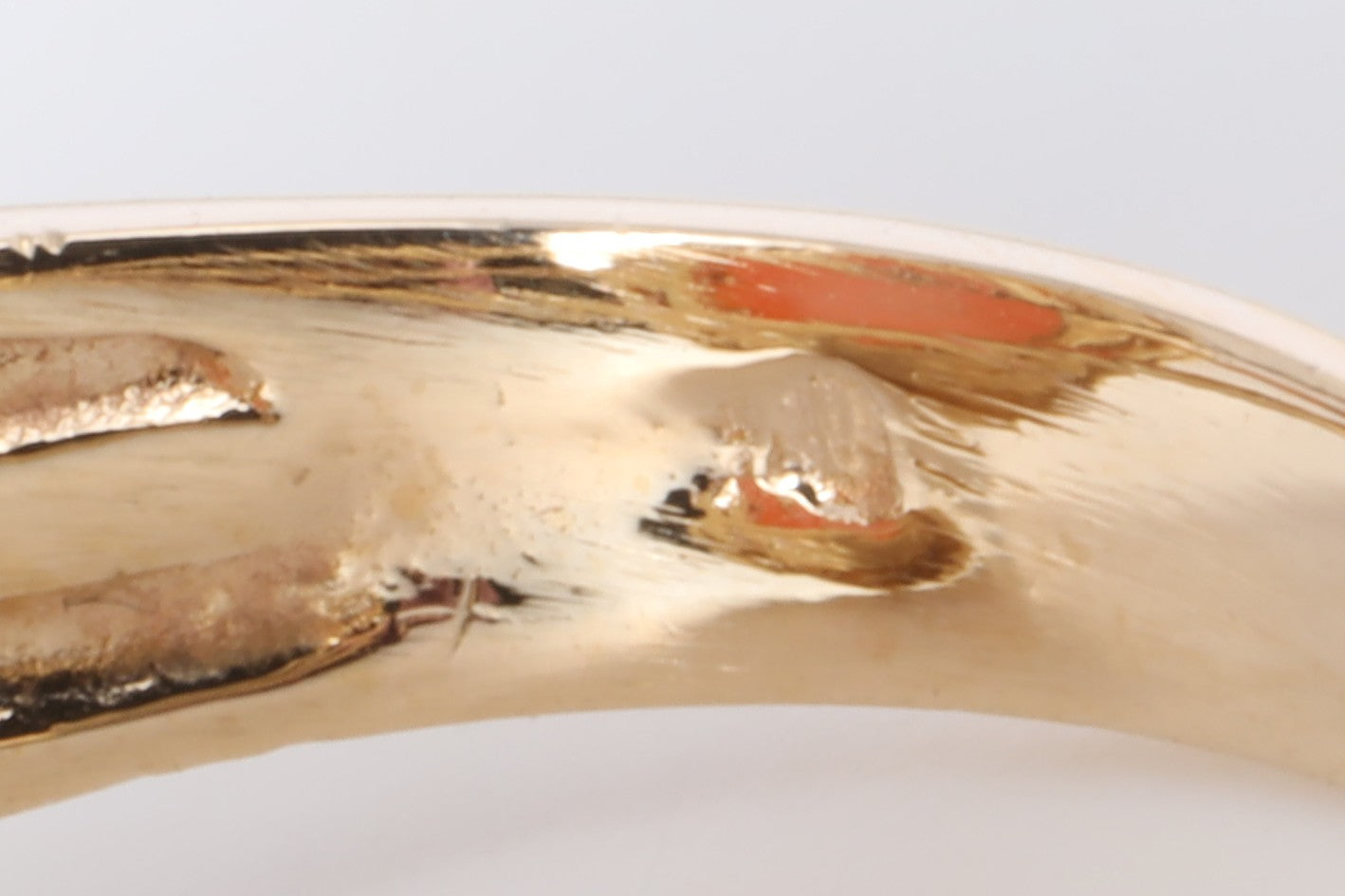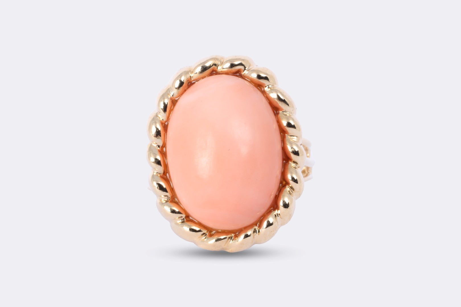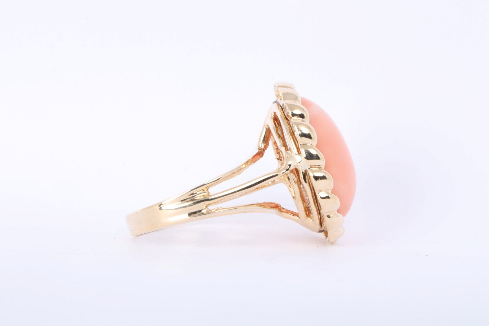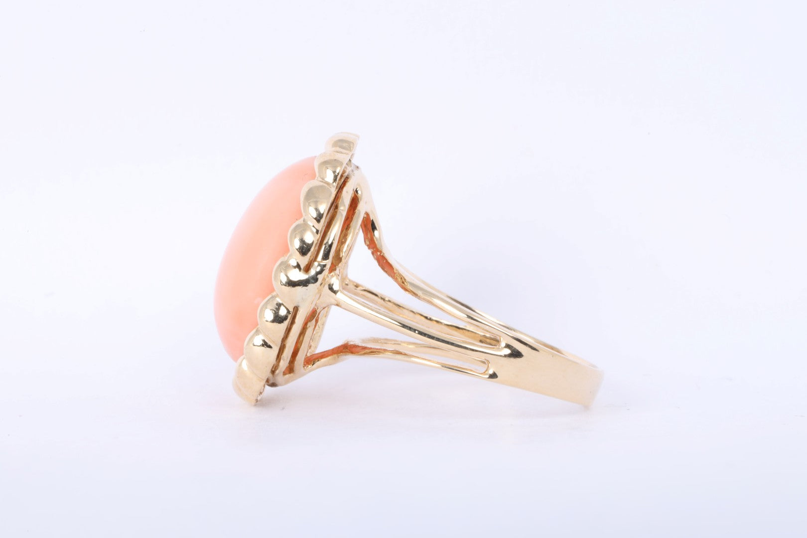 14k Yellow Gold 10.00tcw Coral Cabochon Cocktail Ring Size 8 (9.17g.)