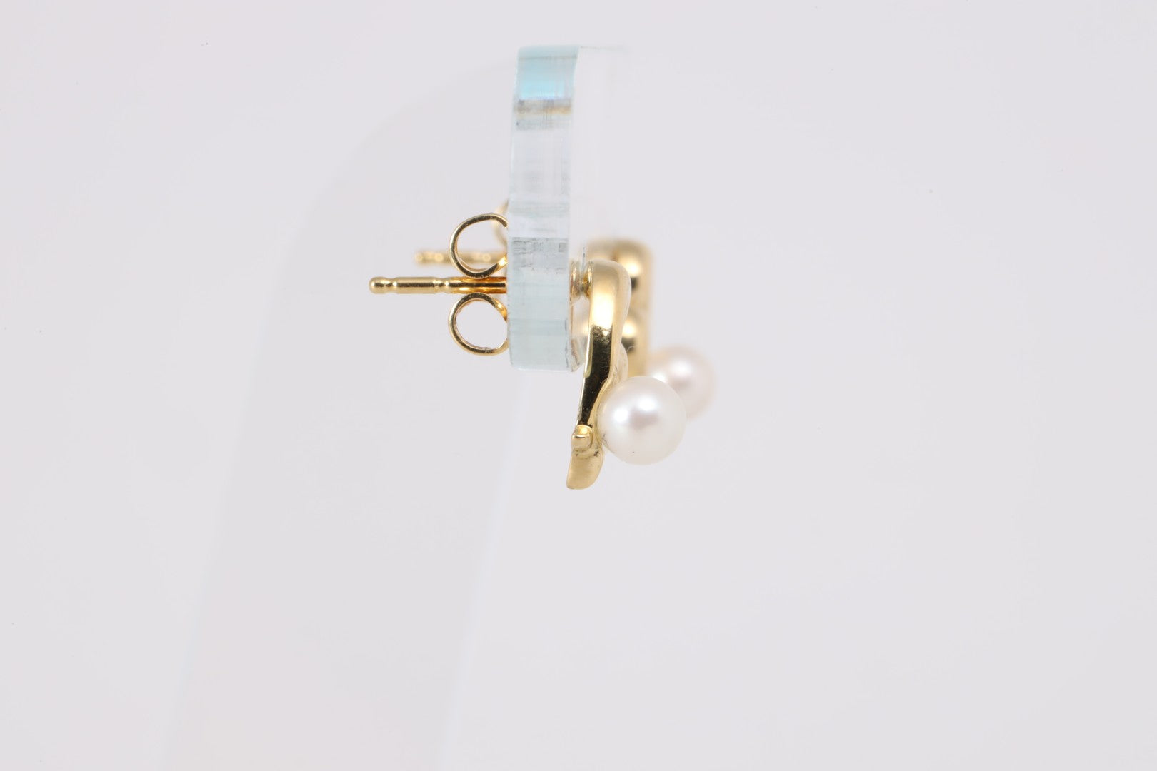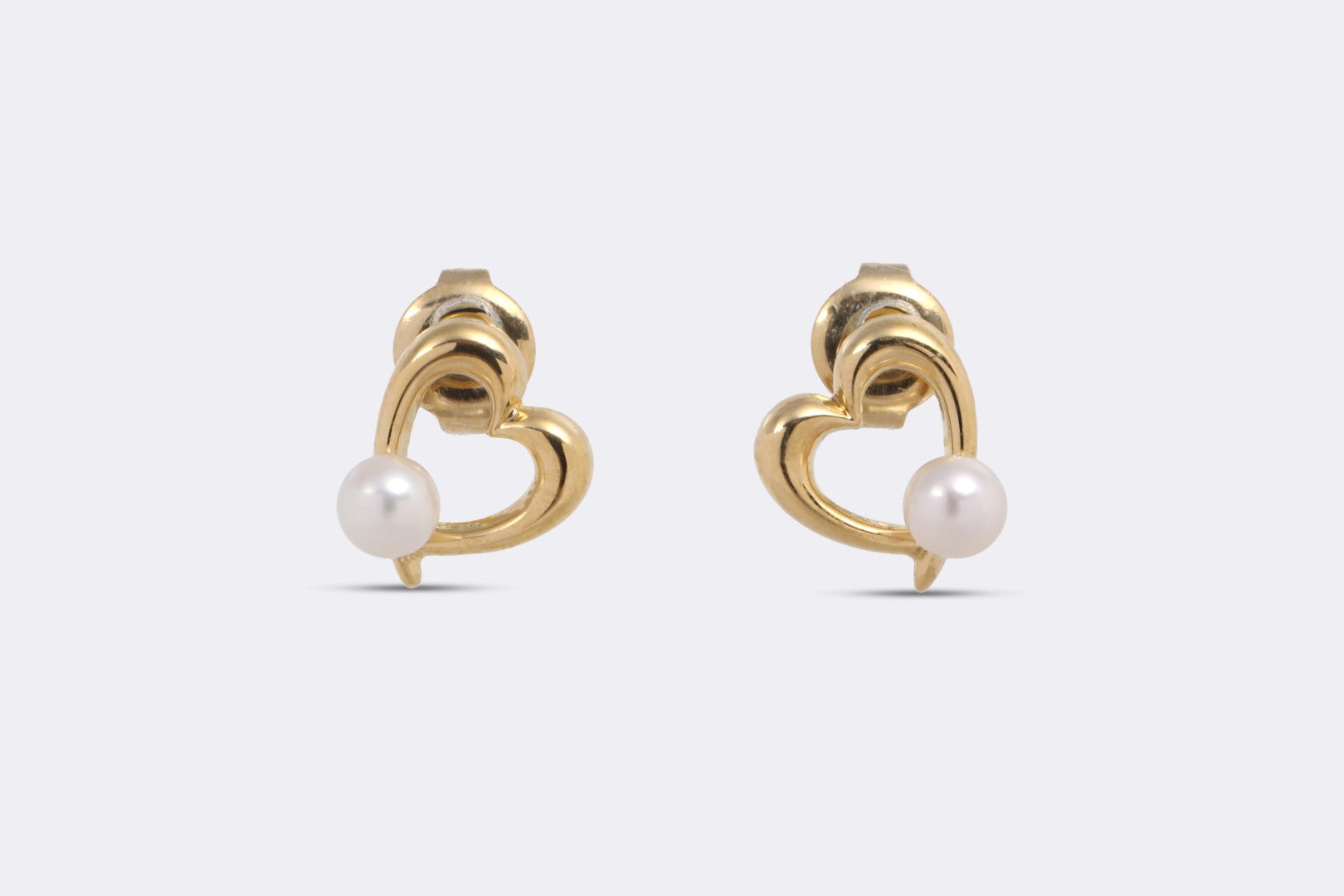 18k Yellow Gold Cultured Pearl Open Heart Stud Earrings (2.19g.)
