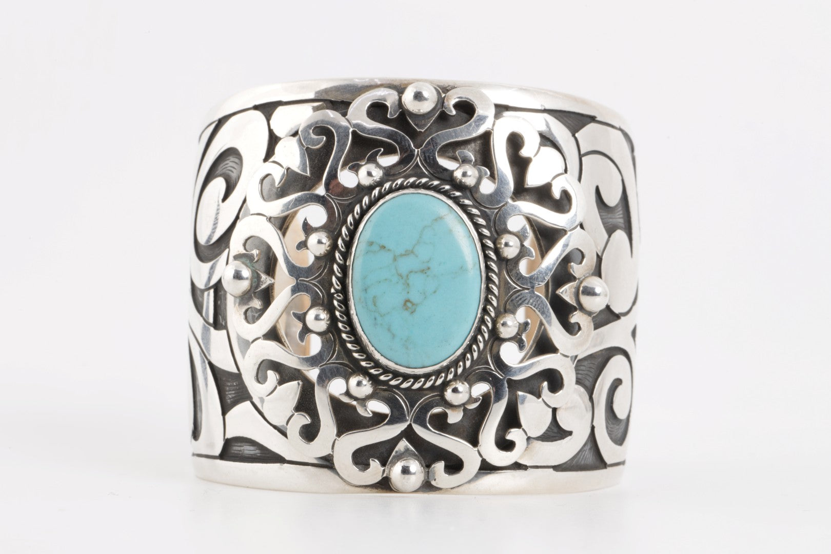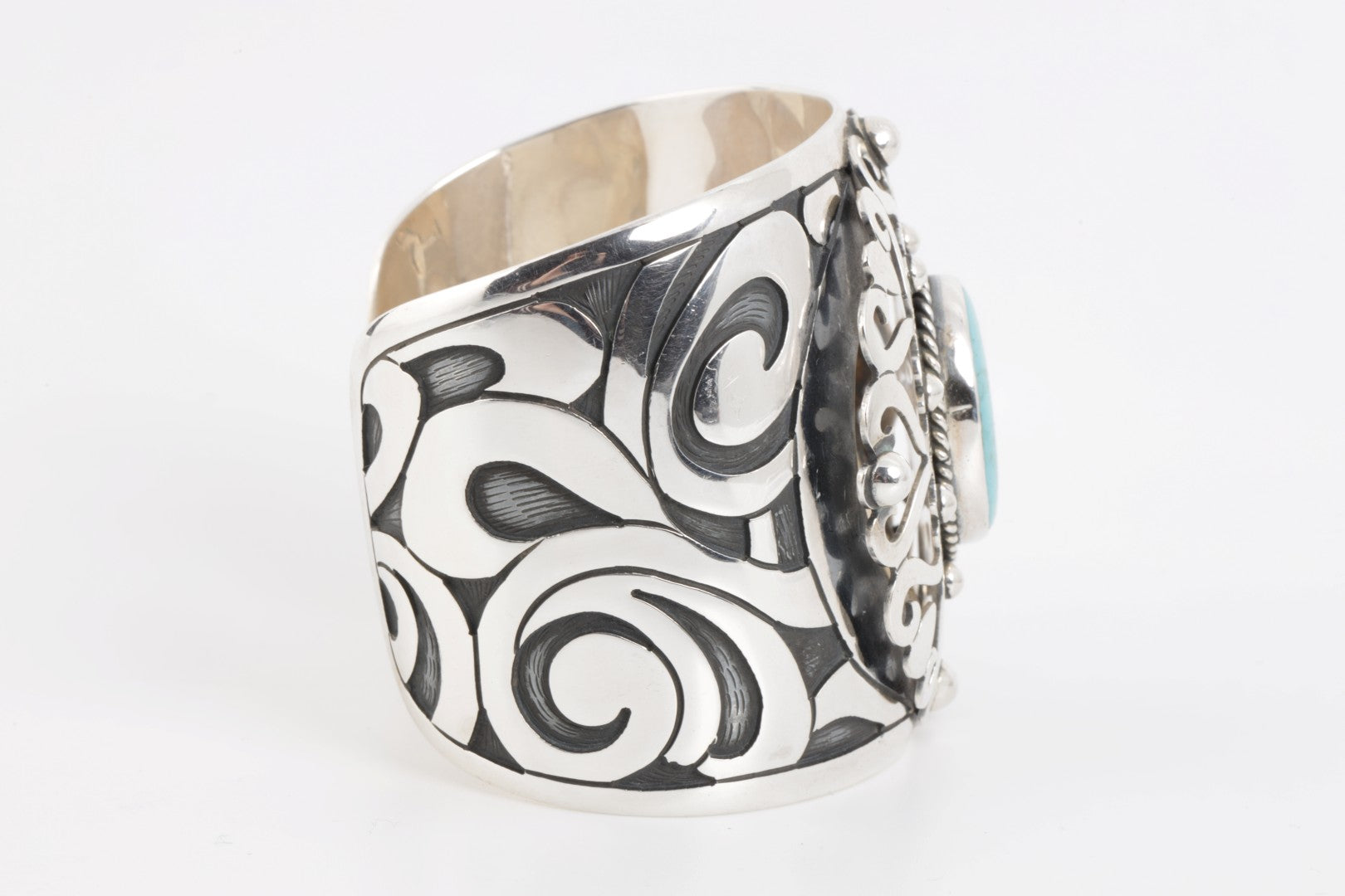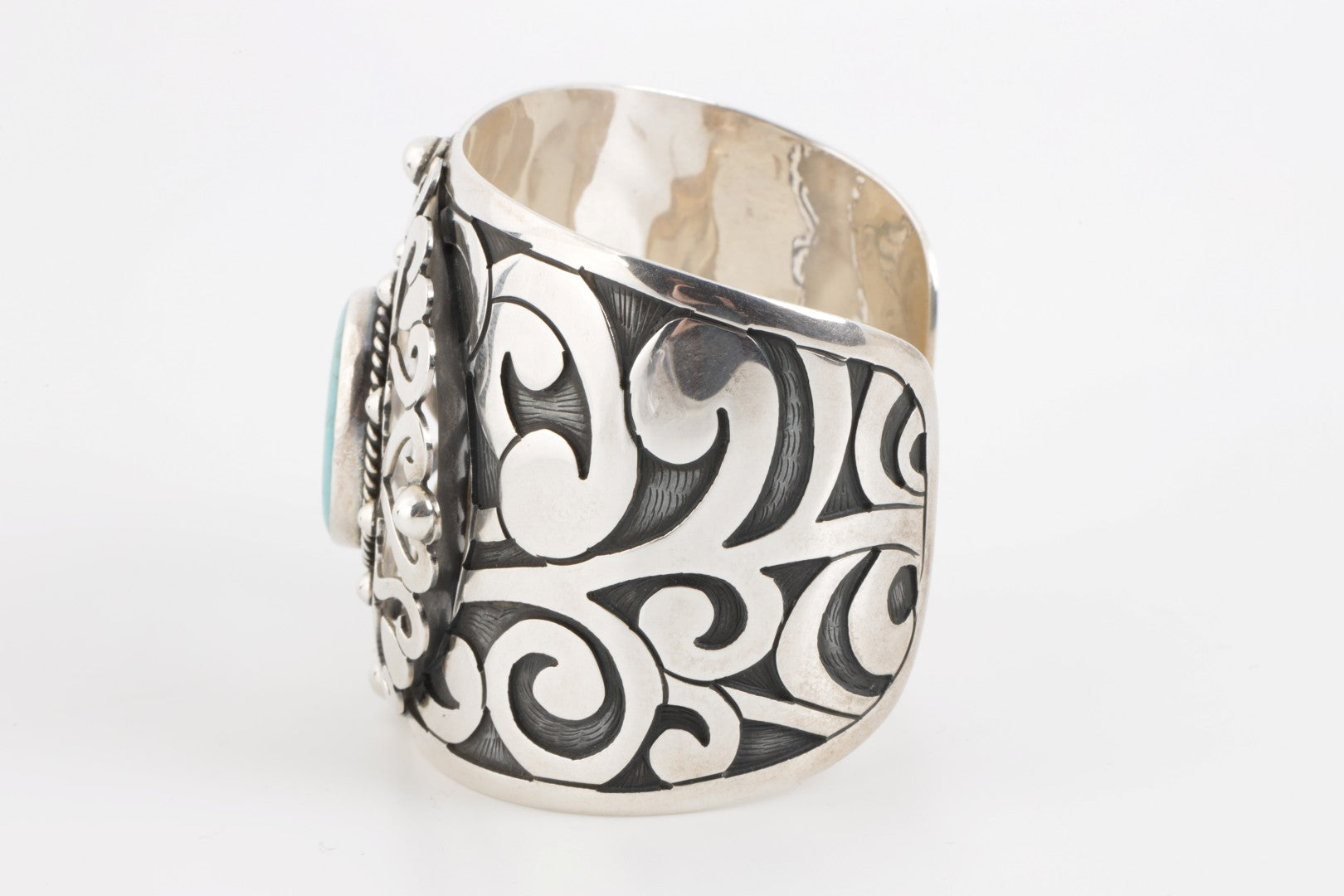 6.5" 925 Silver Turquoise Wide Cuff Bracelet (103.28g.)