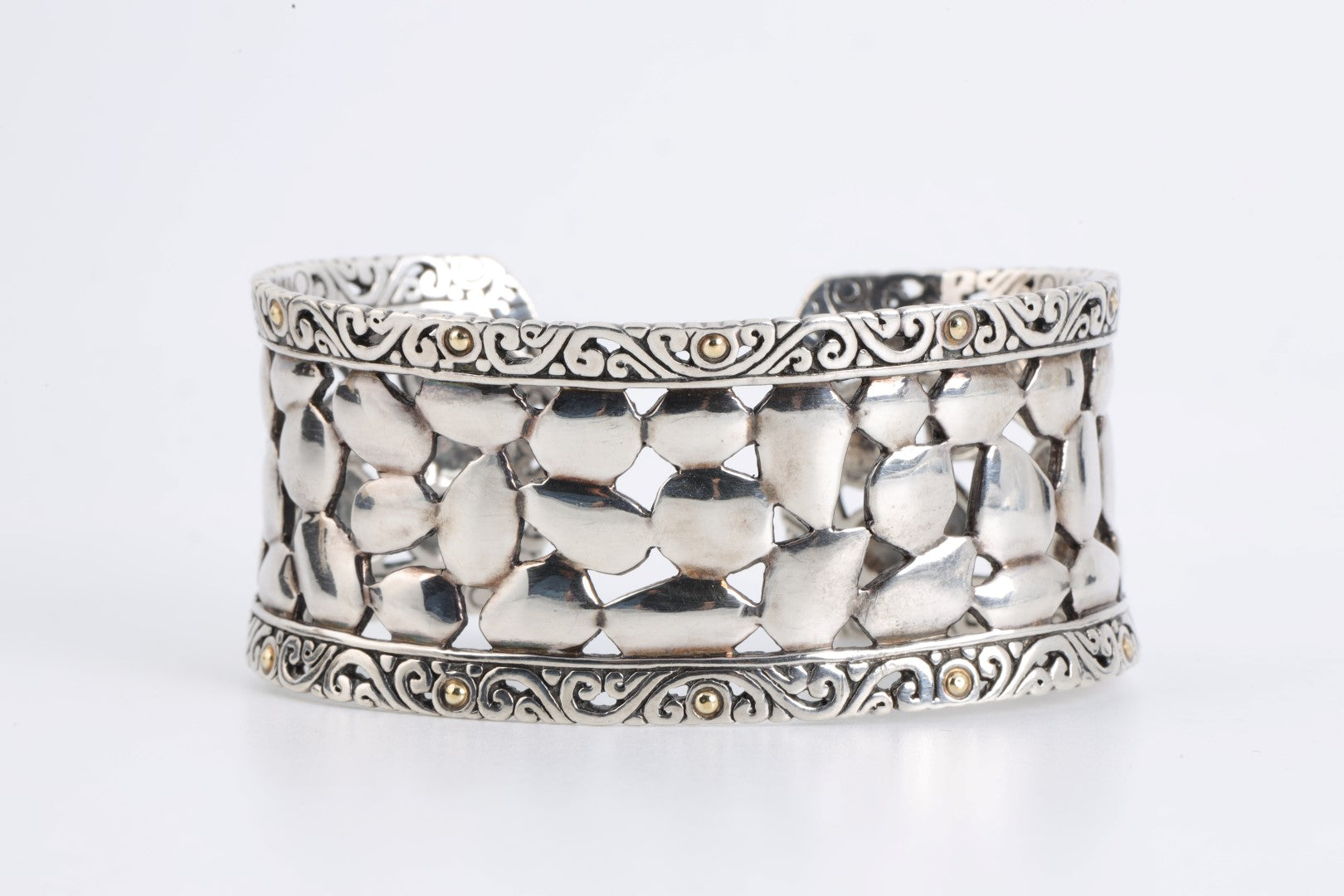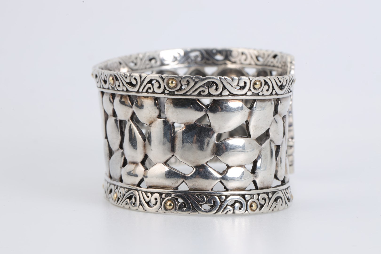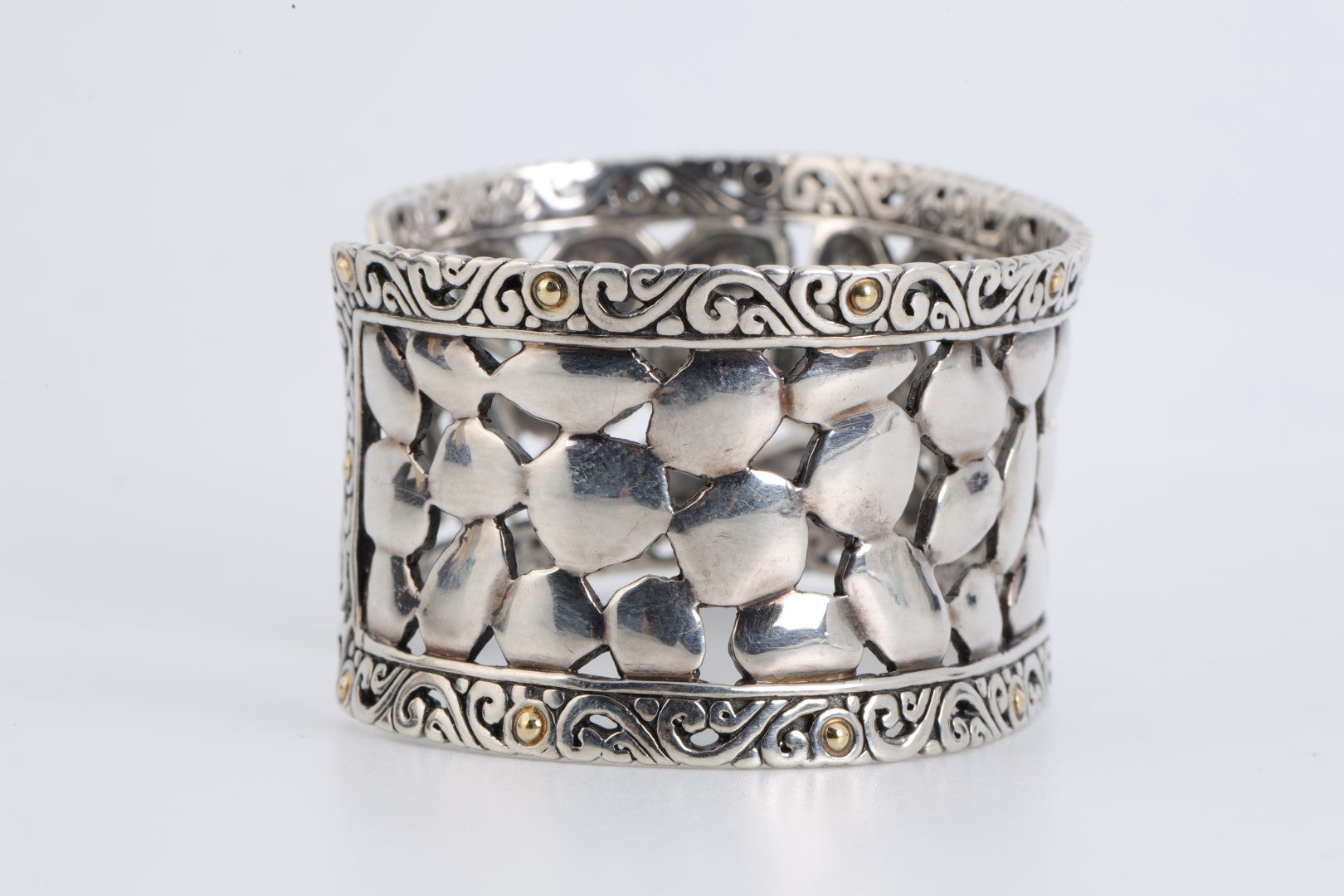 6.5" Effy 925 Silver & 18k Gold Cobble Design Cuff Bracelet (46.51g.)