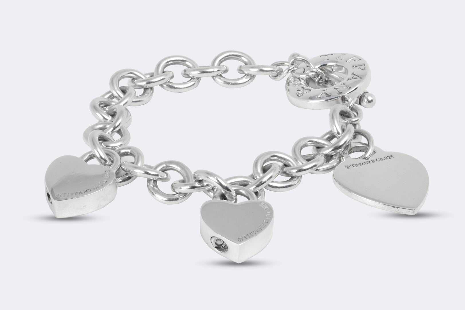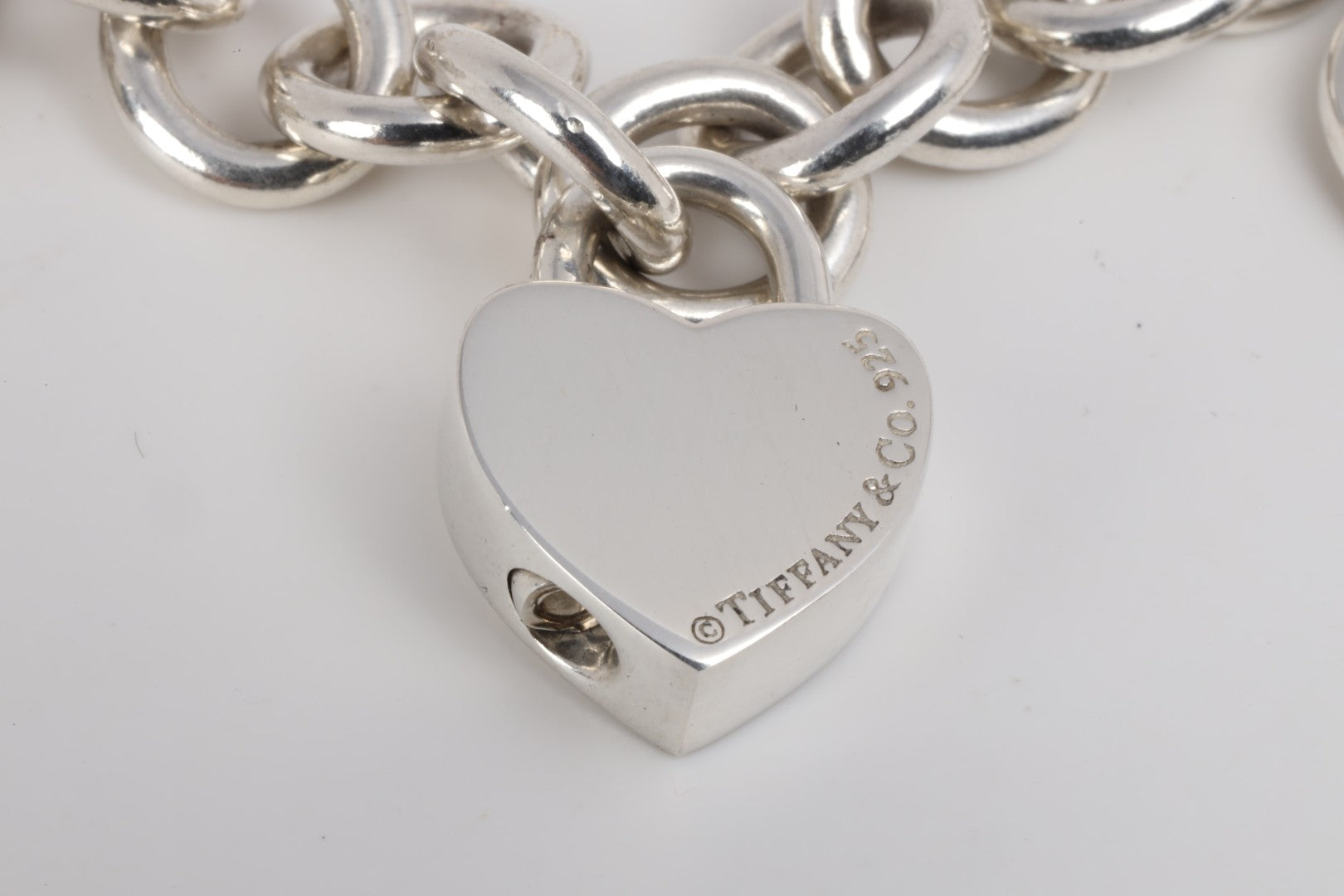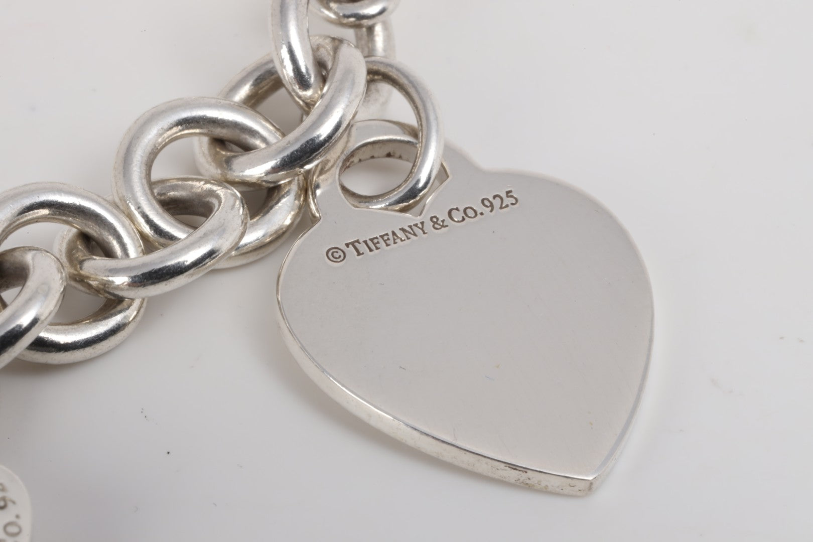 6.75" Tiffany & Co. 925 Silver Blank Heart Tag Bracelet & Charms (57.42g.)