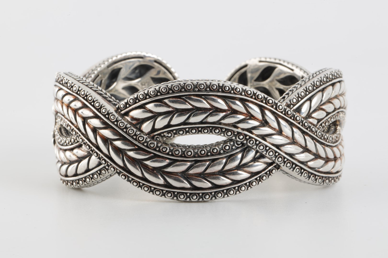 7" JAI 925 Silver Bold Journey Cuff Bracelet (91.41g.)