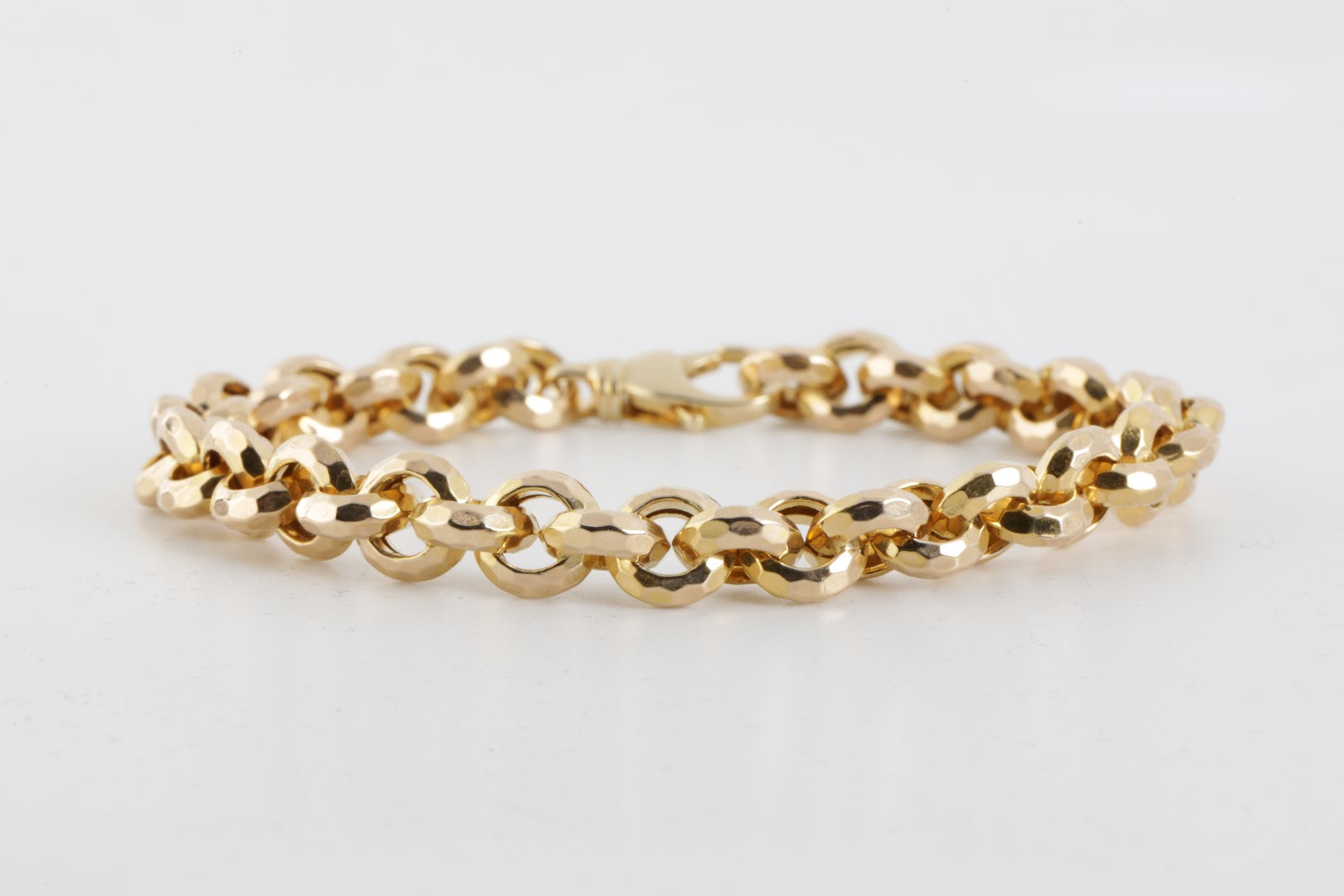 8" 14k Yellow Gold Hammered Cable Chain Bracelet (12.07g.)
