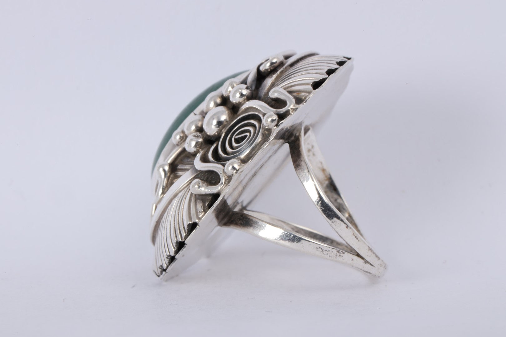 925 Silver Malachiate Cabochon Filigree Flower Ring Size 6 (14.74g.)