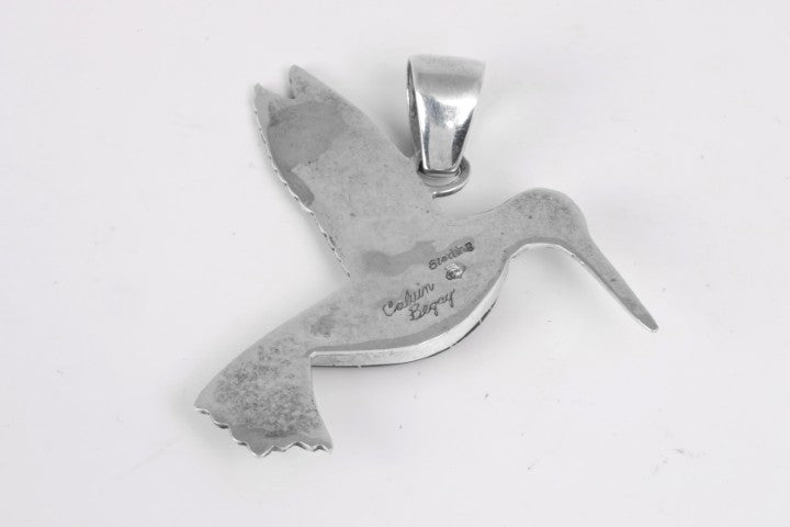 Calvin Begay 925 Silver Opal Black Onyx Inlay Hummingbird Pendant (13.35g.)