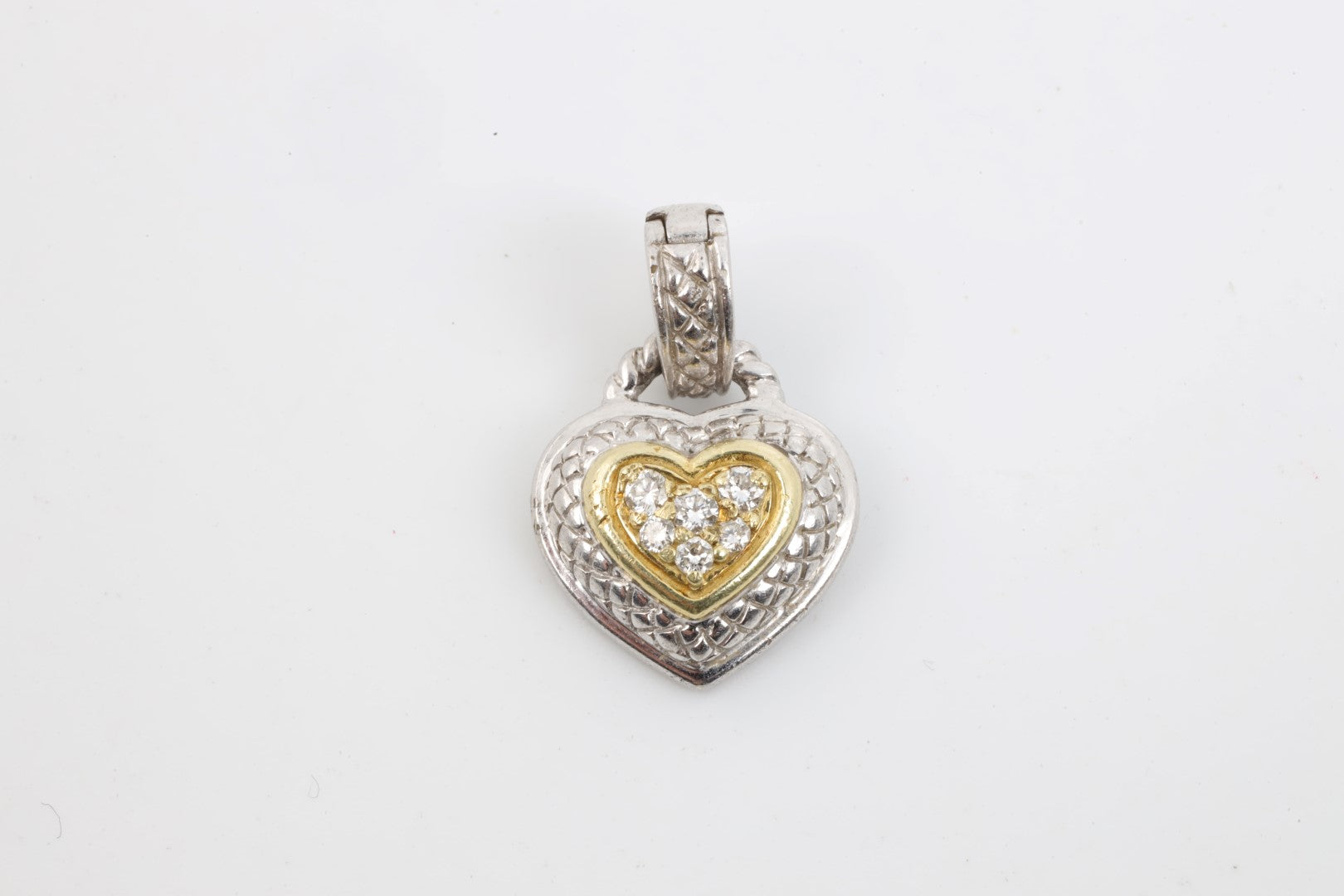 Judith Ripka 925 Silver and 18k Gold 0.06tcw Diamond Heart Pendant (4.49g.)