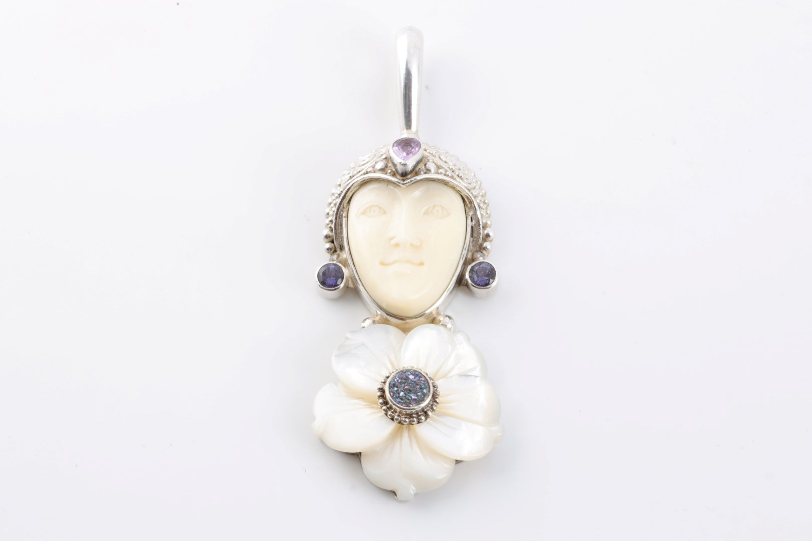 Sajen 925 Silver Mother of Pearl Flower Pendant (31.08g.)