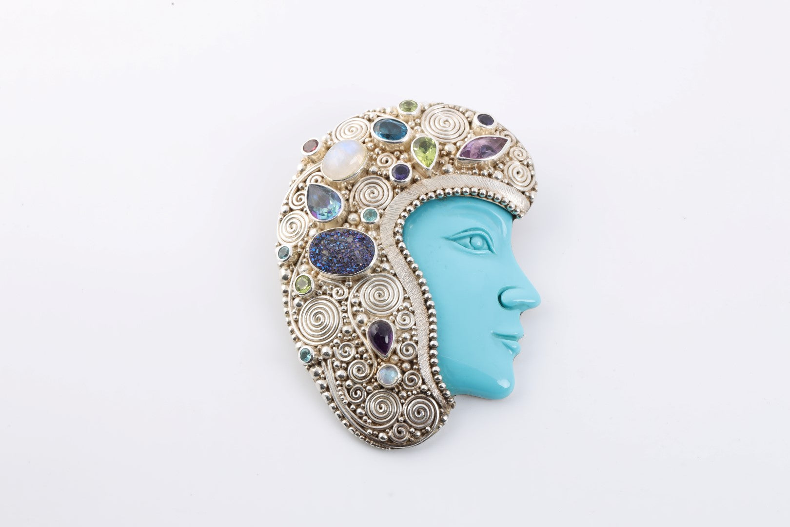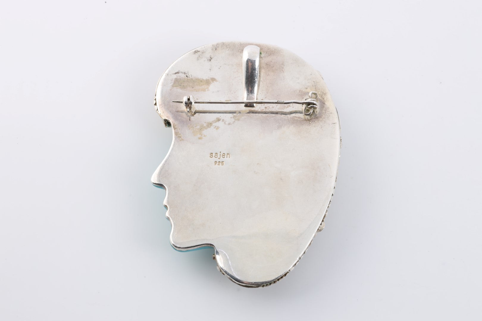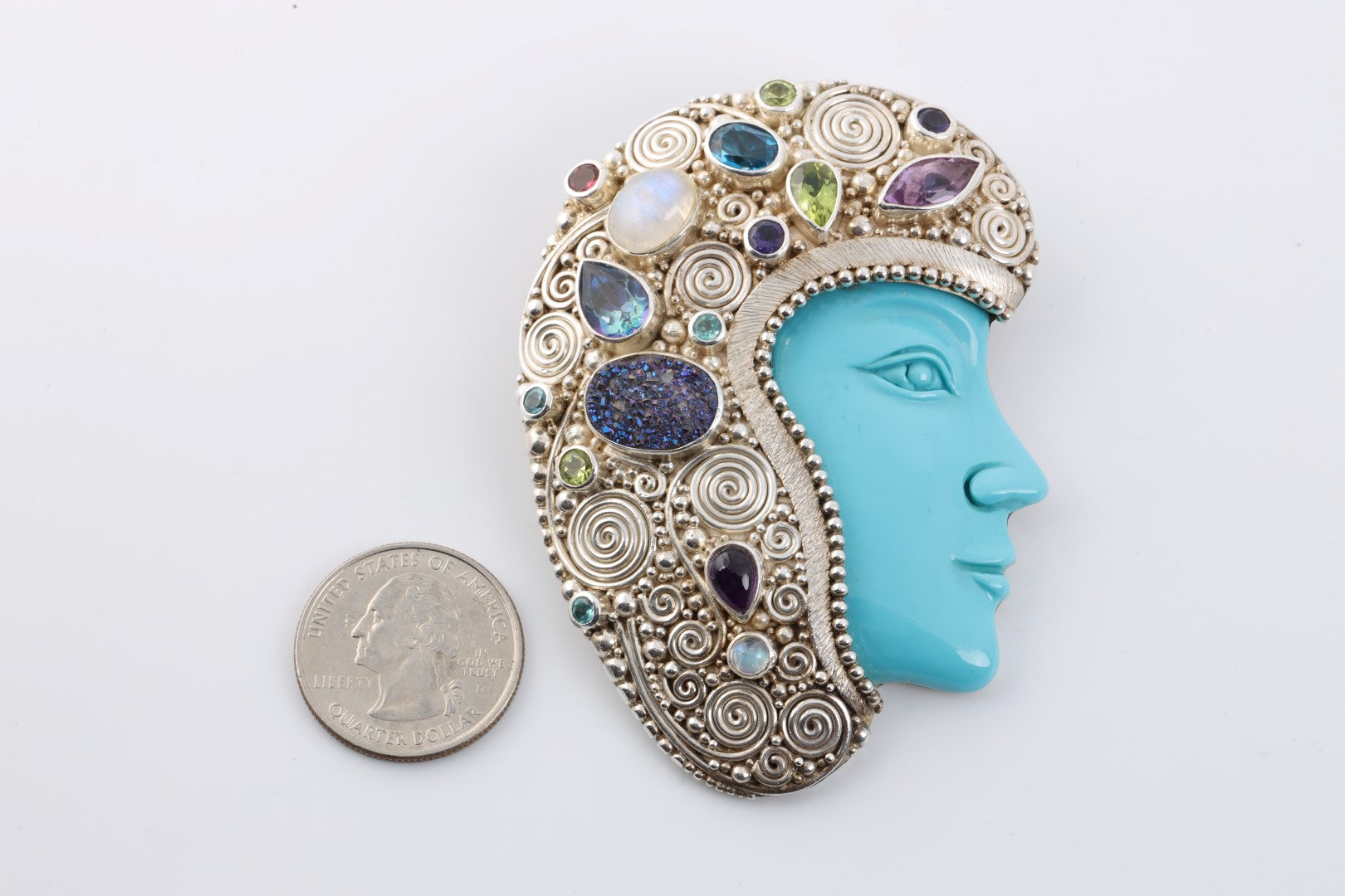 Sajen 925 Silver Multi-Stone Goddess Brooch Pendant (82.18g.)