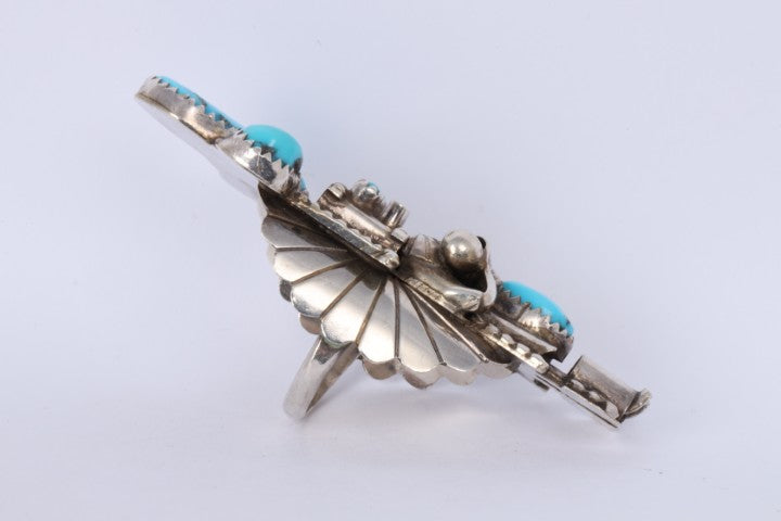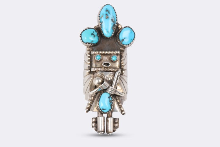 Doris Smallcanyon 925 Silver Navajo Turquoise Kachina Ring Size 6.5 (16.27g.)