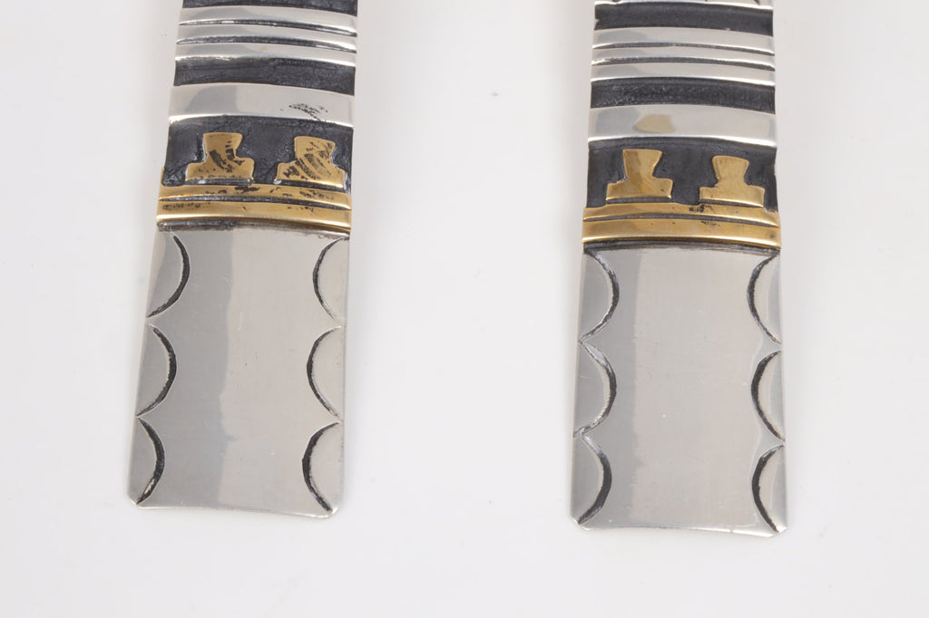 Artistic and eye-catching, these Tom and Rose Singer sterling silver dangle earrings showcase exceptional craftsmanship and a beautifully fluid silhouette. Their elongated design creates graceful movement with every step, while the polished silver surface reflects light for a striking, sculptural look.