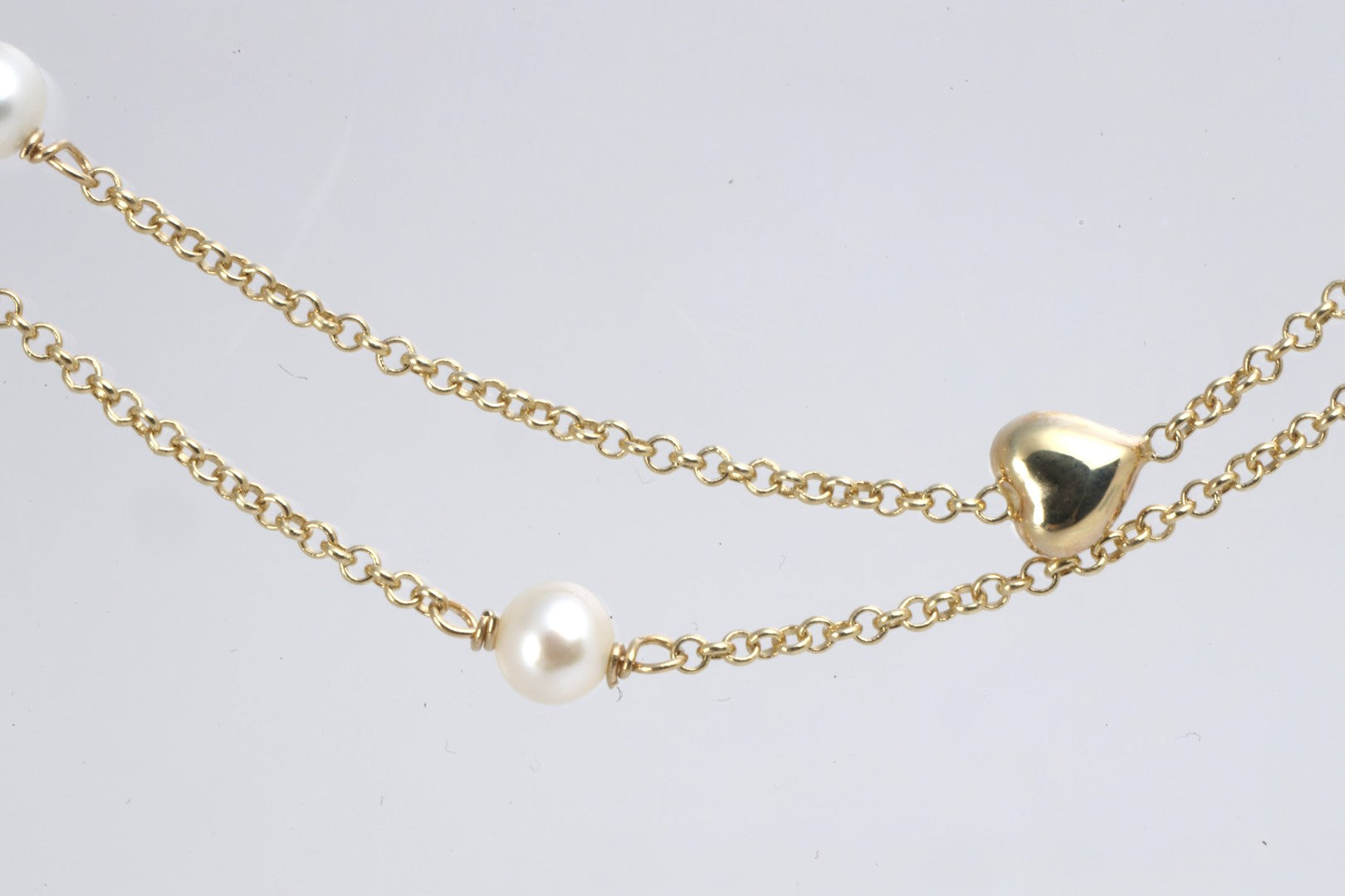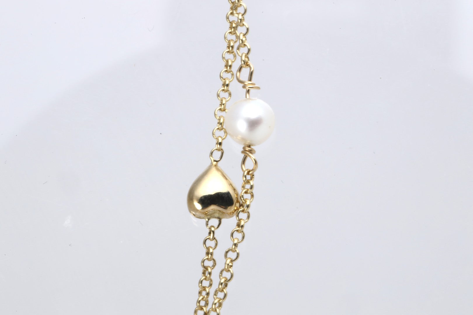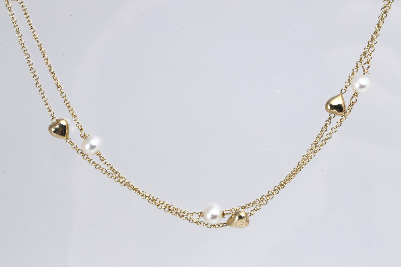 14k Yellow Gold Heart & Pearl Station 2-Strand Layering Necklaces (16.50g.)