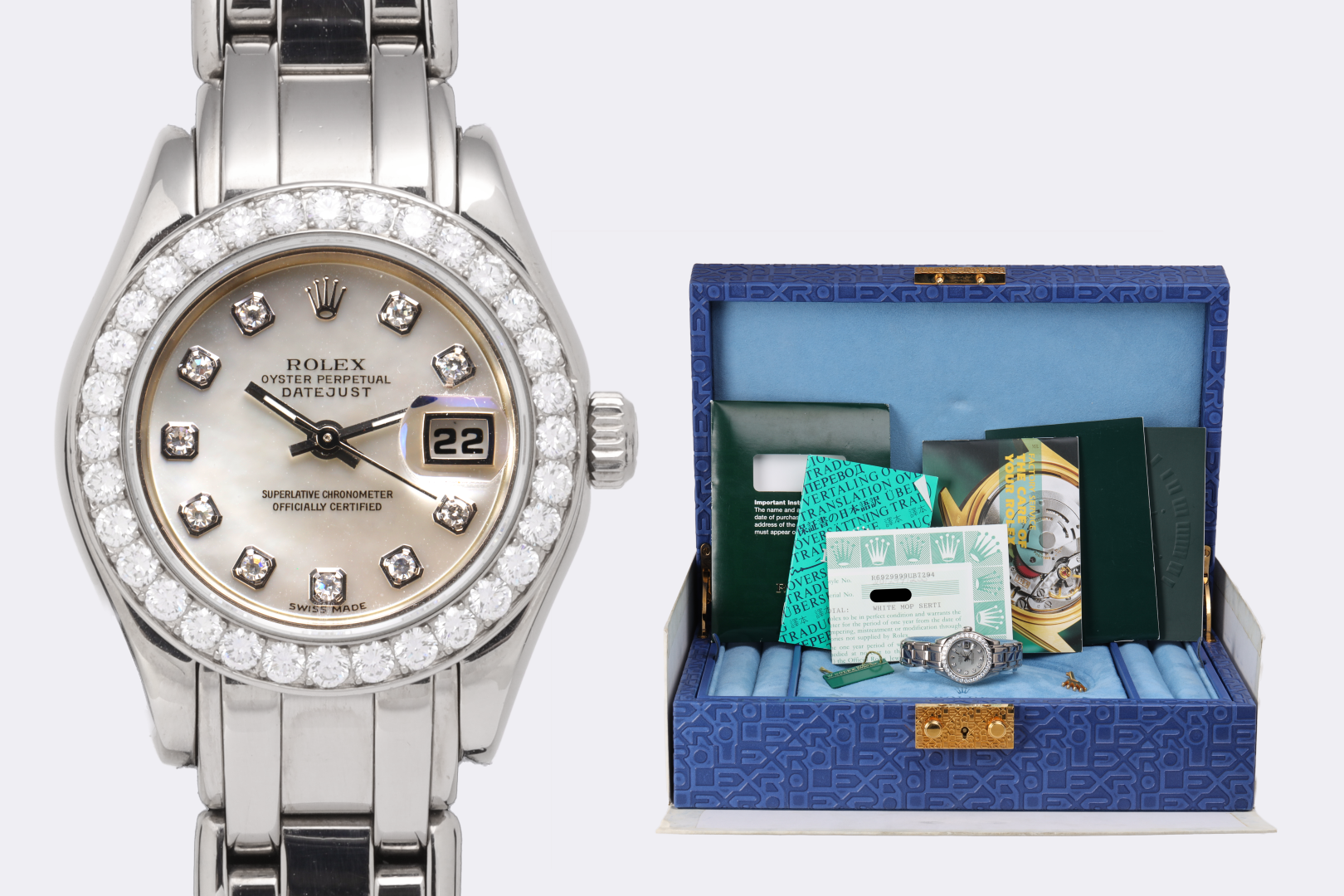 Rolex Datejust Pearlmaster 69299 29mm 18k White Gold 1995 Watch Box & Papers