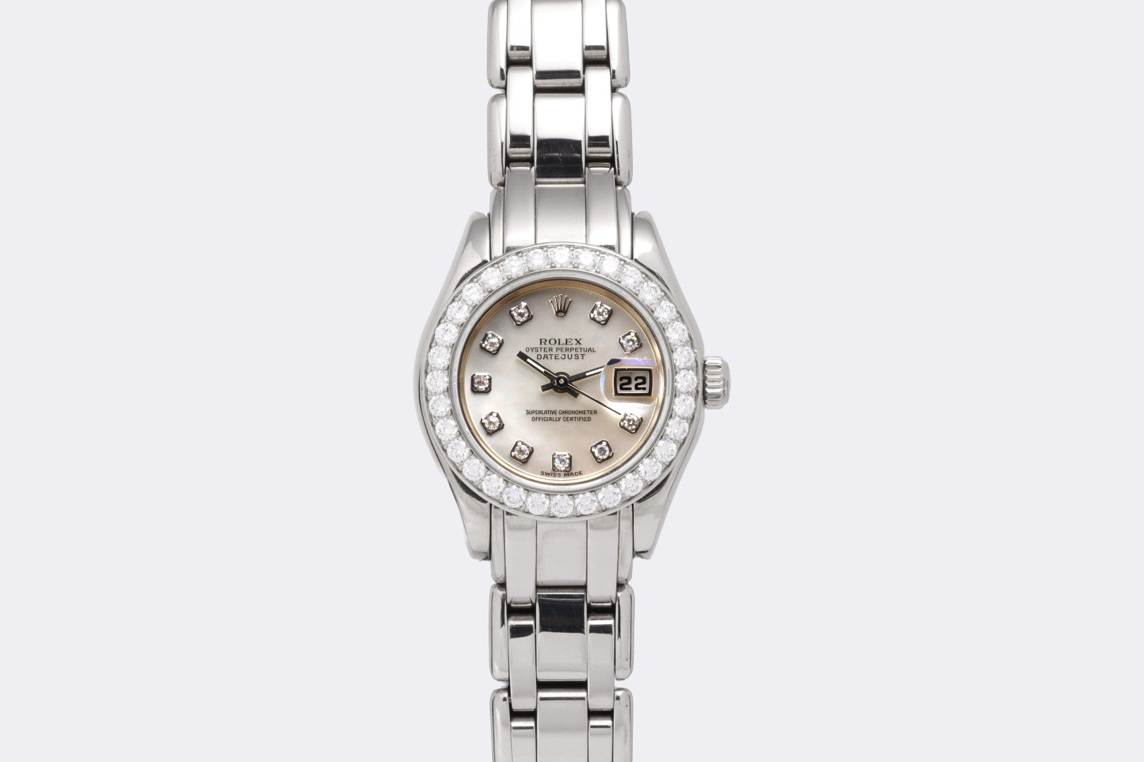 - Bracelet: 18k White Gold Pearlmaster Bracelet with fold clasp (5 screws - fits up to 6.5" wrist)