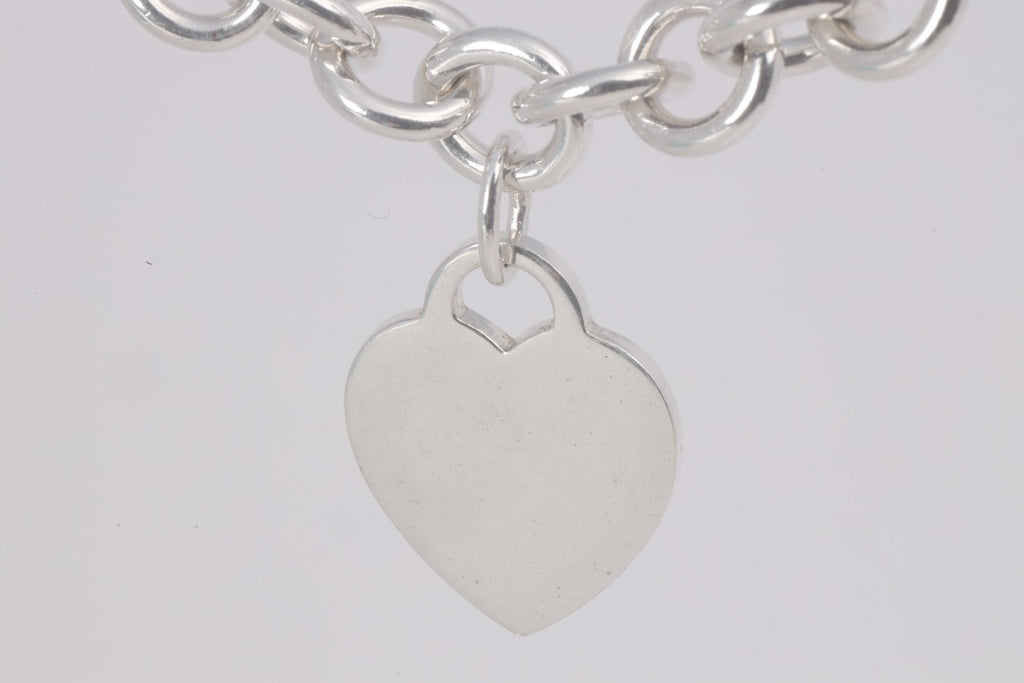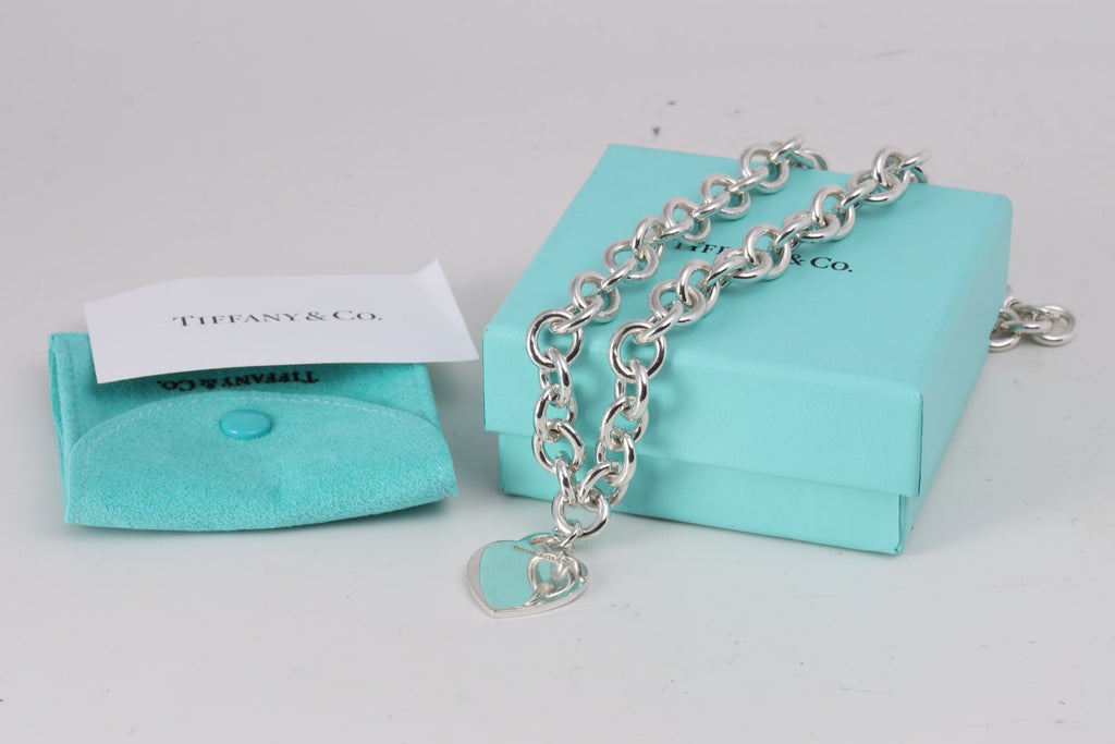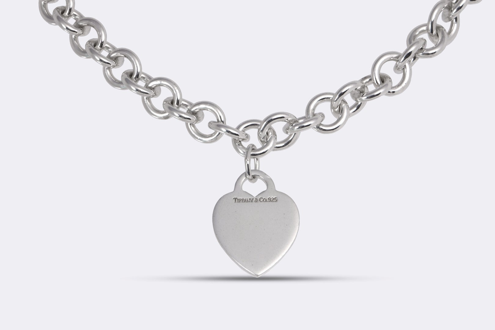 15.5" Tiffany & Co. 925 Silver Blank Heart Tag Choker Necklace (70.54g.)