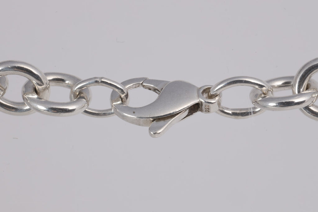Bold and iconic, this Tiffany & Co. choker features the signature blank heart tag on a gleaming sterling silver link chain. Designed to sit elegantly at the neckline, it’s a statement piece that can be personalized with engraving—perfect for commemorating milestones, celebrating love, or creating a one-of-a-kind keepsake. Approximate retail: $1,000.