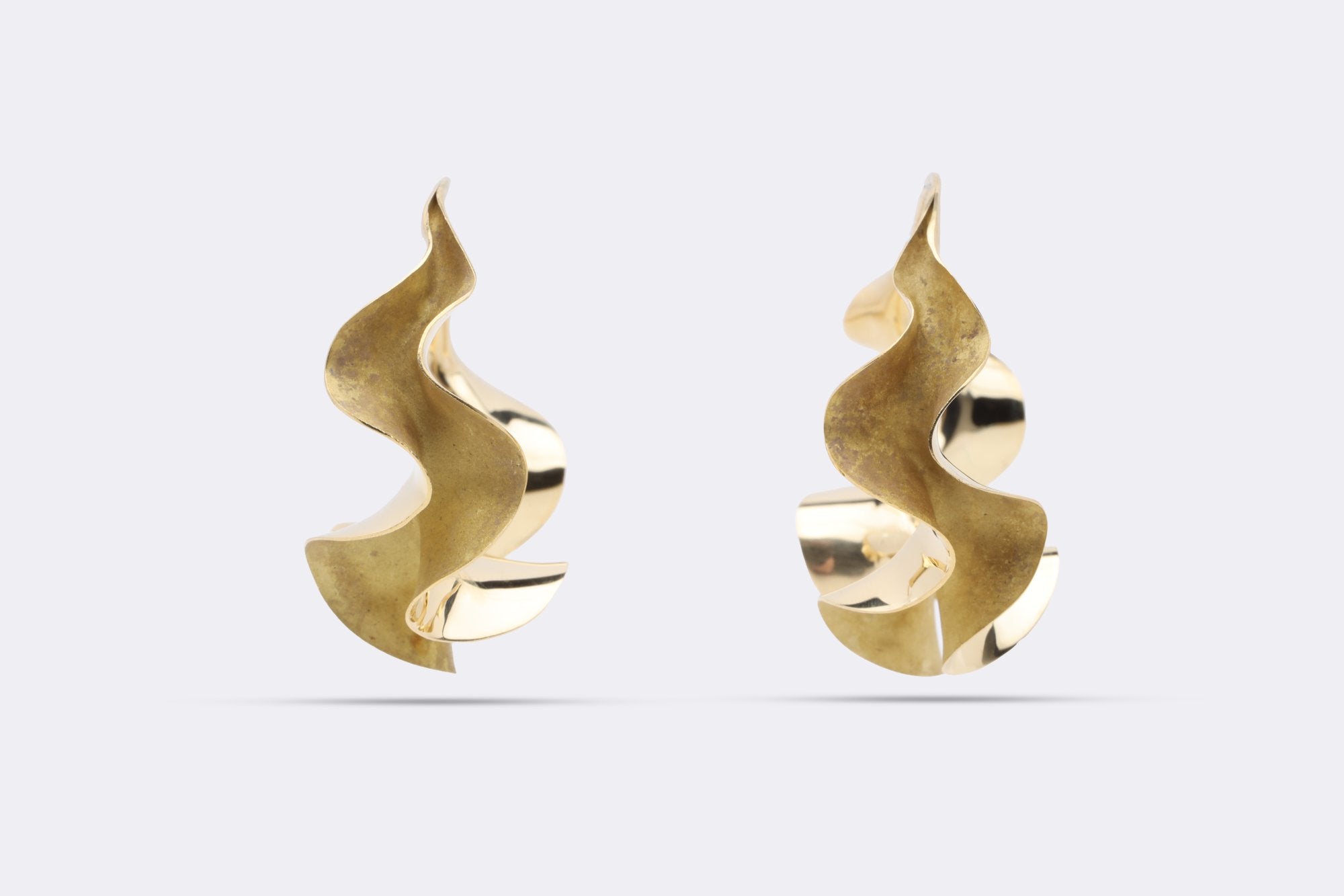 These exquisite hoop earrings by Barbarosa are a testament to timeless elegance. Crafted from 18k yellow gold, they feature a unique ruffled design that adds a touch of sophistication to any outfit.