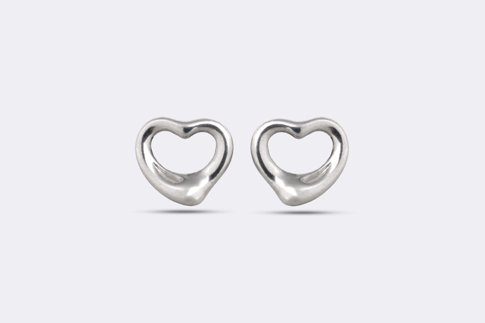 These classic Tiffany & Co. Elsa Peretti Open Heart stud earrings showcase her iconic sculptural design in bright sterling silver. Lightweight at 1.94 grams, they offer an elegant, effortless look with beautiful movement and shine—perfect for everyday wear or gifting.
