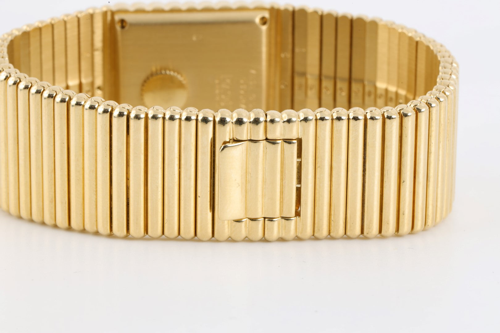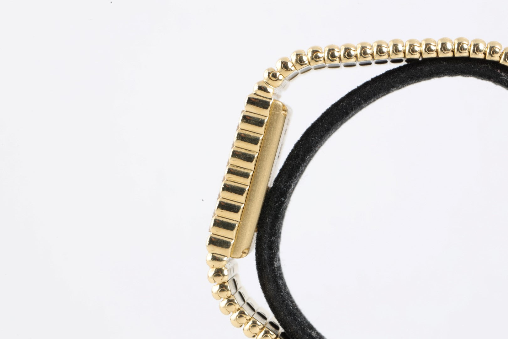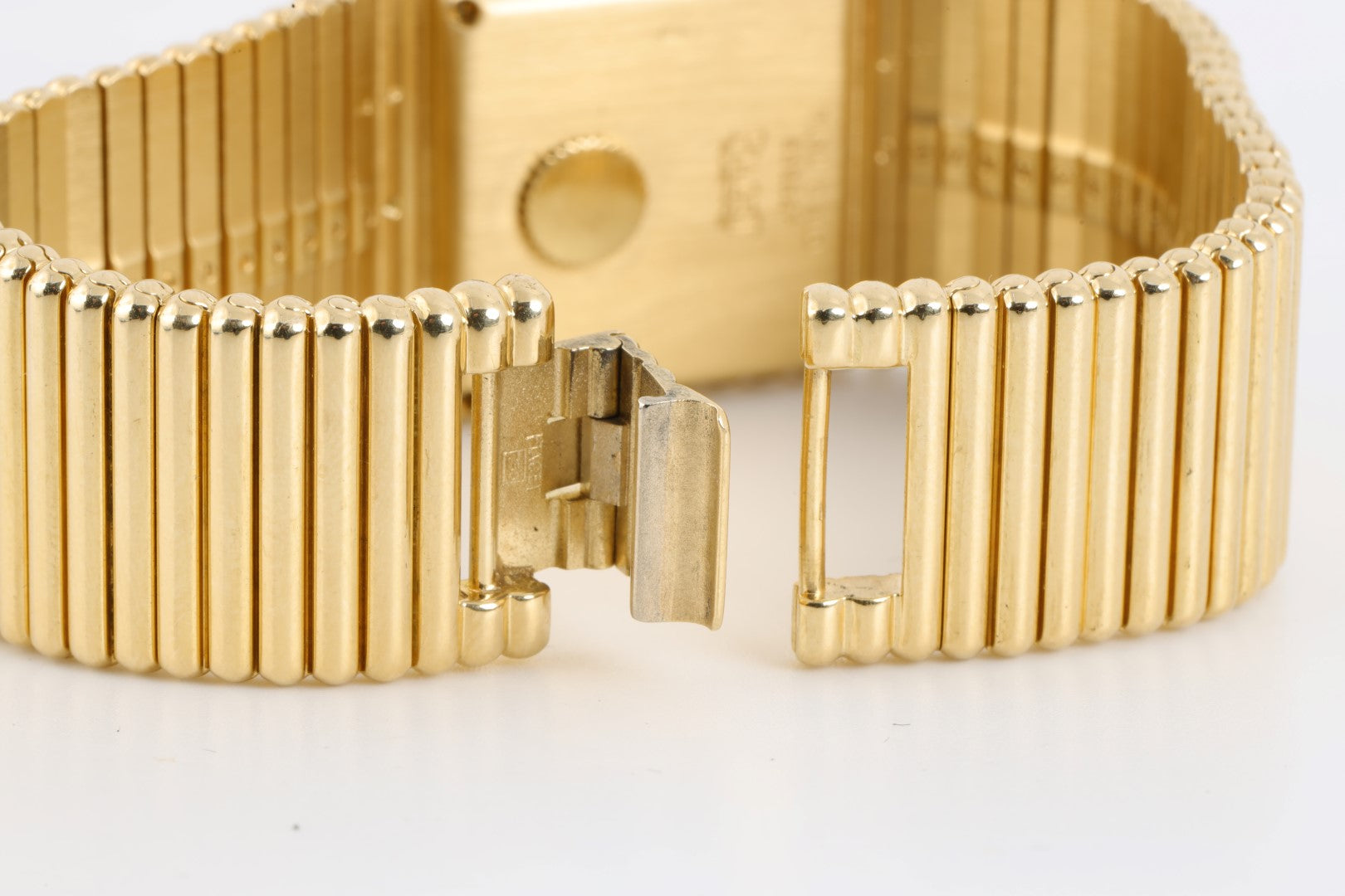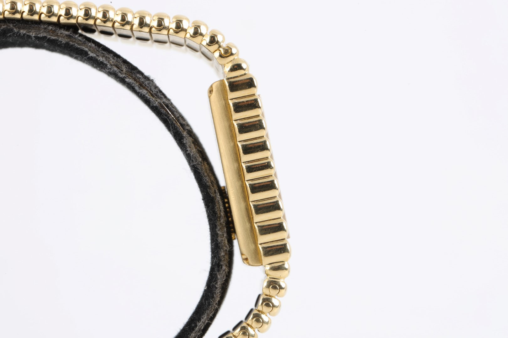 The Piaget Polo 7131C510 is an exquisite ladies’ dress watch crafted in Switzerland from solid 18k yellow gold. This luxurious model features a 25mm square case paired with a heavy gold bracelet and secured by a buckle clasp. Powered by a quartz movement and protected by a sapphire crystal, it offers simple hour and minute functions. With its impressive weight and timeless design, this Polo exemplifies Piaget's refined craftsmanship and elegance.
