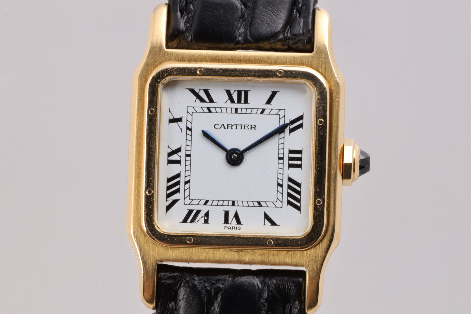 A masterclass in elegance and history, the Cartier Santos-Dumont is one of the most iconic timepieces ever created. Originally designed in the early 1900s for aviator Alberto Santos-Dumont, this legendary watch was among the first wristwatches made specifically for practical use — merging function and fine artistry in equal measure. This reference 78097 model, crafted in 18k yellow gold, carries forward that heritage with understated sophistication and unmistakable Cartier refinement. Its clean square case, classic Roman numerals, and sapphire cabochon crown are hallmarks of the brand’s timeless Parisian design.