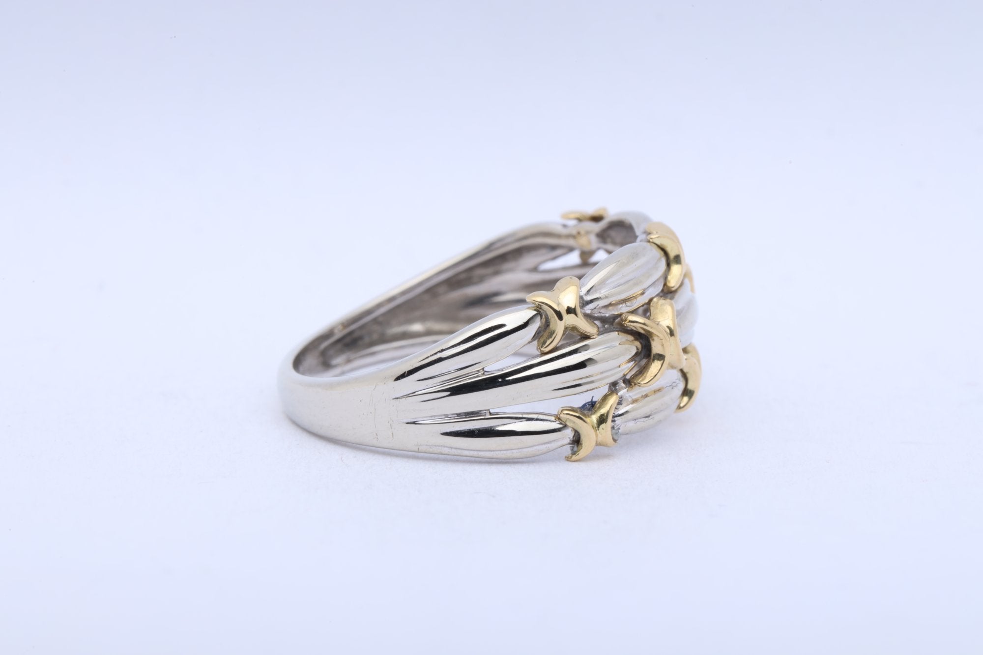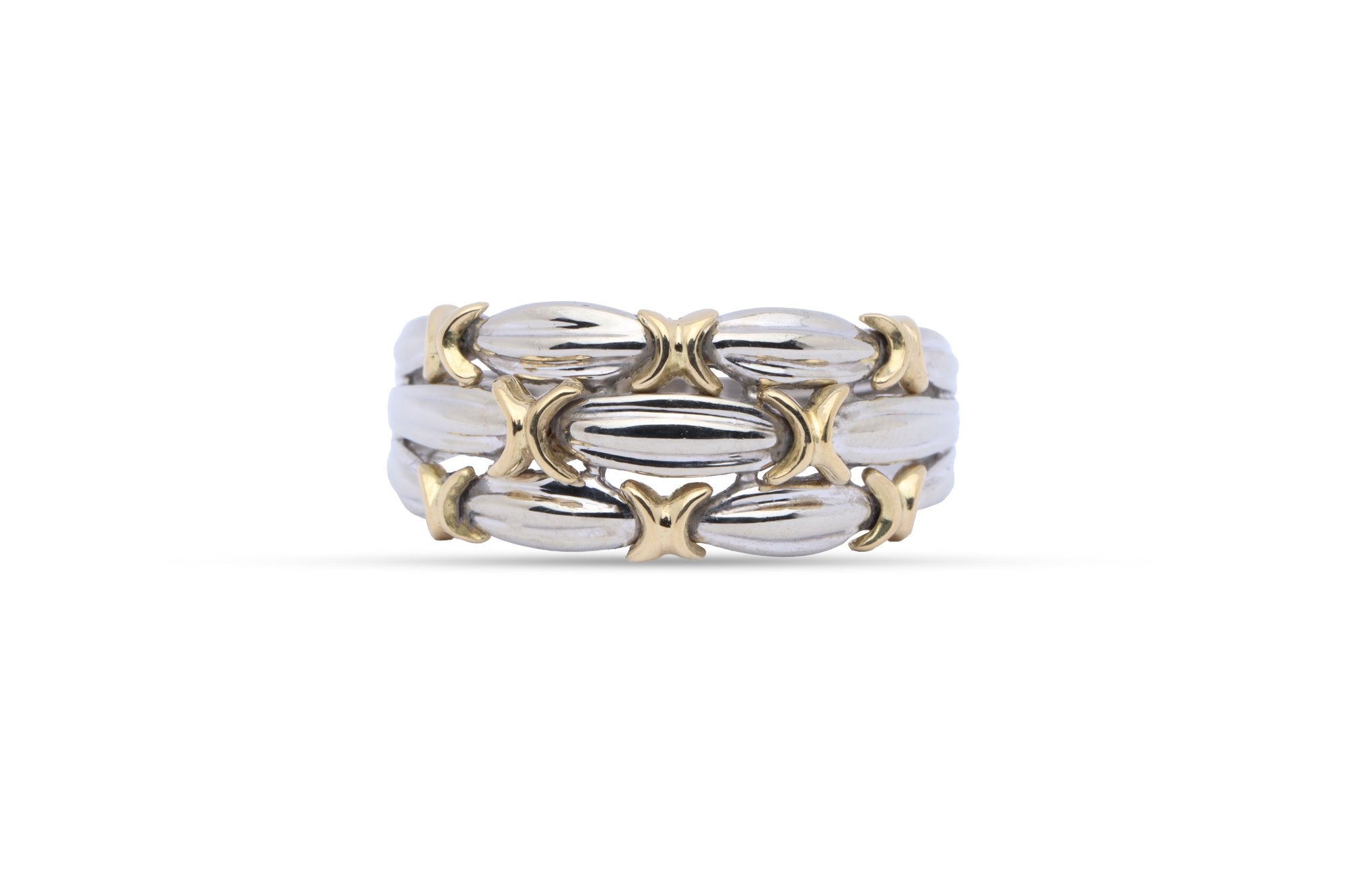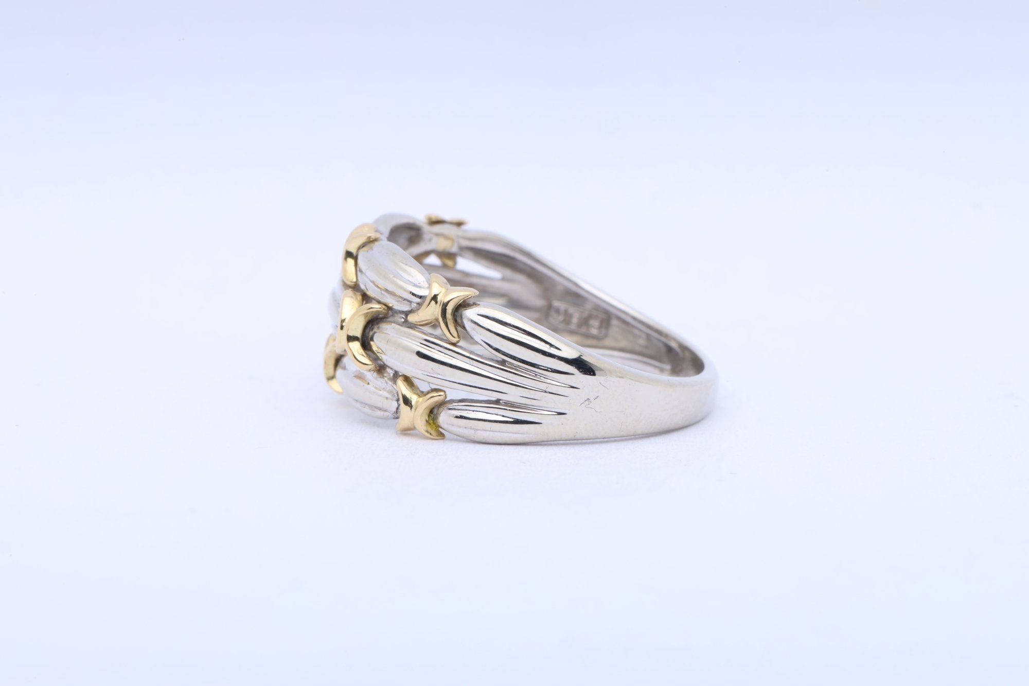 18k Two-Tone White & Yellow Gold 3 Row X Station Ring Size 8 (5.00g.)