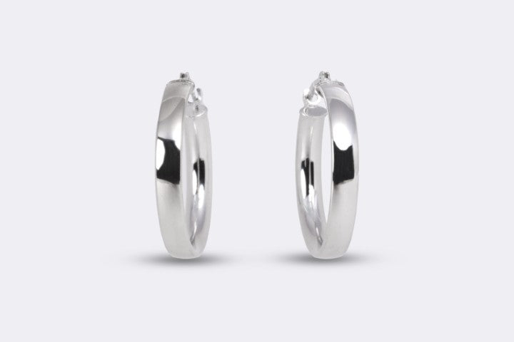 A delicate pair of 14k white gold hoop earrings, perfect for everyday shine or subtle layering. These hinged hoops measure just under 20mm in length and weigh 1.23 grams—lightweight, minimal, and versatile. Approximate retail: $260.